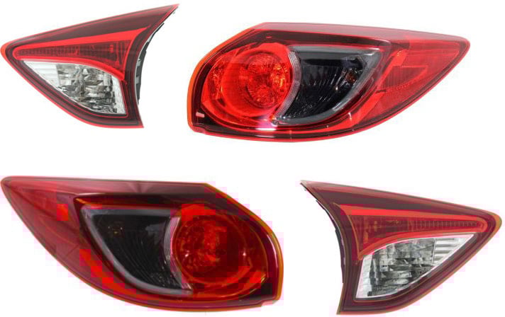Tail Light Set for 2013-2016 Mazda CX-5, Left (Driver) Side, Inner and Outer, Halogen Replacement