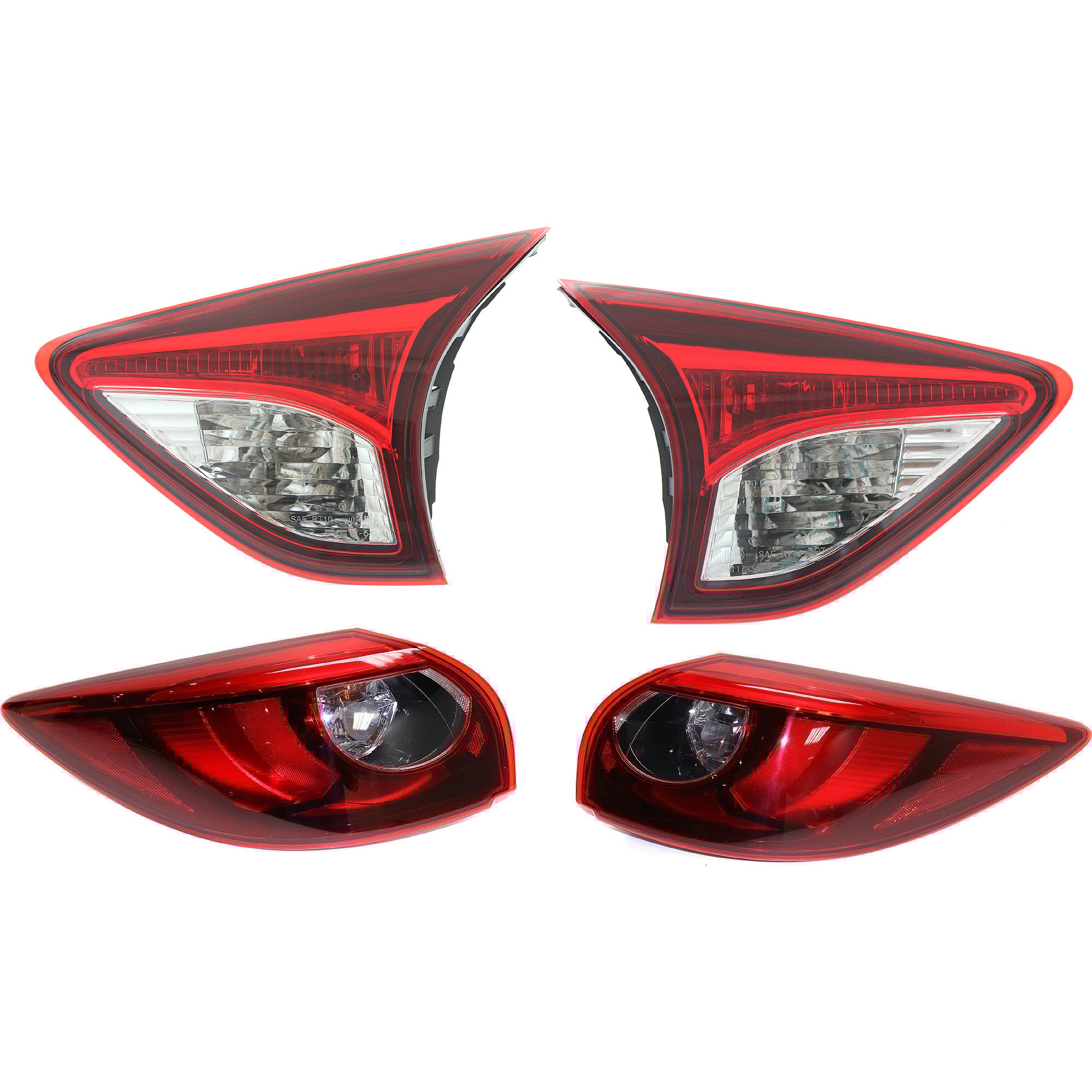 Tail Light Assembly for Mazda CX-5 2013-2016, Pair/Set of 4, Inner and Outer, Right (Passenger) and Left (Driver), Halogen/Bulb Type, Replacement