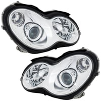 Headlight Assembly for Mercedes-Benz C Class 2005-2007 Sedan/Wagon, Right (Passenger) and Left (Driver), Halogen, Chrome Bezel, 2-Piece, Replacement