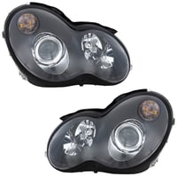 Headlight Assembly for Mercedes-Benz C Class 2005-2007 Sedan/Wagon, Right (Passenger) and Left (Driver), Halogen, Black Bezel, 2-Piece, Replacement