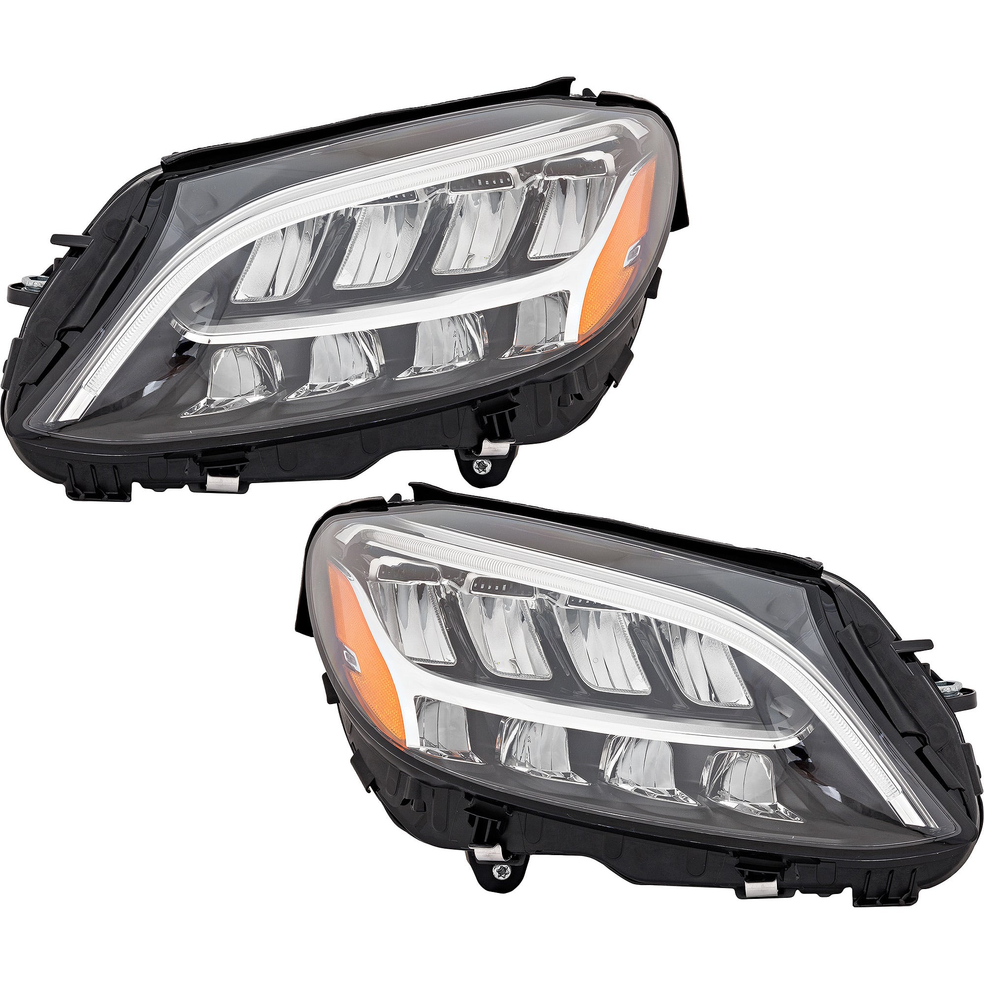 Headlight Assembly Pair/Set for Mercedes-Benz C-Class 2015-2018, Right (Passenger) and Left (Driver), LED, w/o Adaptive Headlight, Coupe/Sedan Replacement