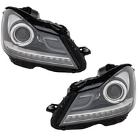 Projector Headlight Assembly for Mercedes Benz C-Class Coupe 2012-2014, Right (Passenger) and Left (Driver), Halogen, Black Interior, with LED Daytime Running Lights, without Corner Light, Replacement
