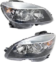 Headlight Assembly Pair/Set for Mercedes-Benz C-Class 2008-2011, Halogen, Right (Passenger) and Left (Driver) Replacement
