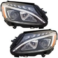 Headlight Assembly Pair/Set for Mercedes-Benz C-Class 2015-2018, Right (Passenger) and Left (Driver), LED, w/o Adaptive Headlight, Coupe/Sedan Replacement