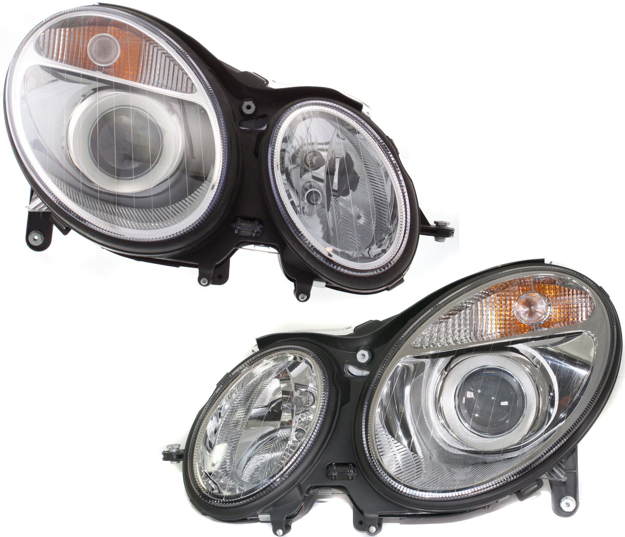 Headlight Assembly Pair/Set for Mercedes-Benz E-Class 2003-2006 Sedan/Wagon, Right (Passenger) and Left (Driver), Halogen, Replacement