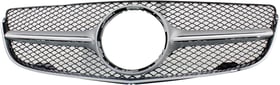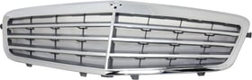 Grille for Mercedes-Benz E-Class 2003-2006, Sedan/Wagon, Plastic Chrome Shell with Silver Insert, 9-Molding, Without Proximity Cruise Control, Elegance Package, Replacement