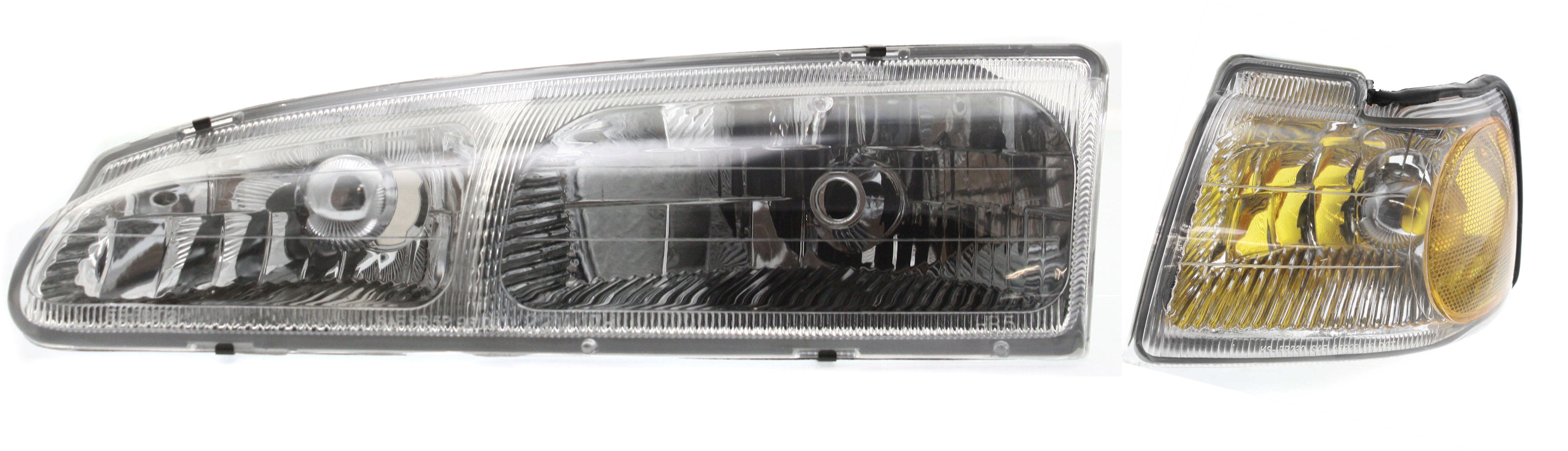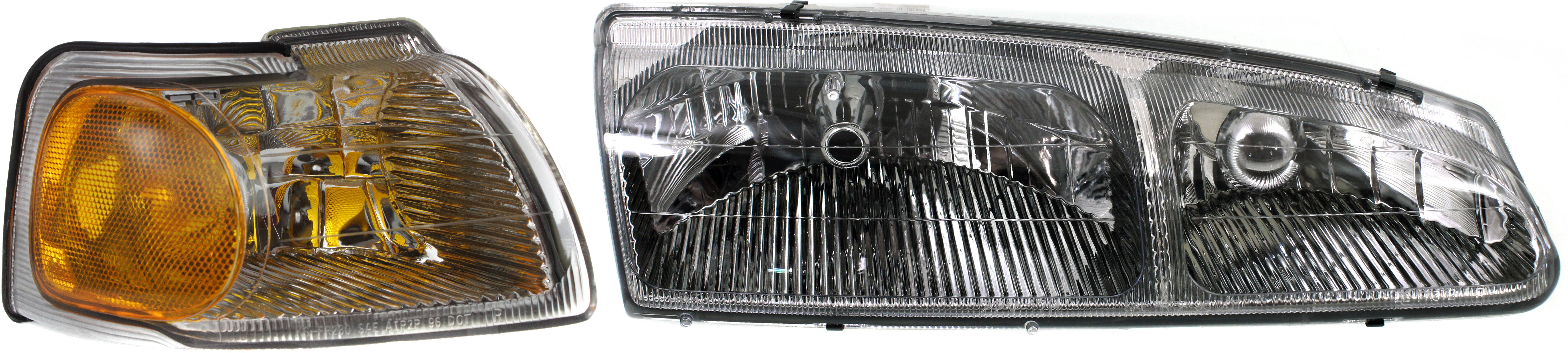 Headlight Kit for 1996-1997 Ford Cougar / Thunderbird, Right (Passenger) and Left (Driver) with Bulbs, 4-Piece Set including Corner Lights, Replacement