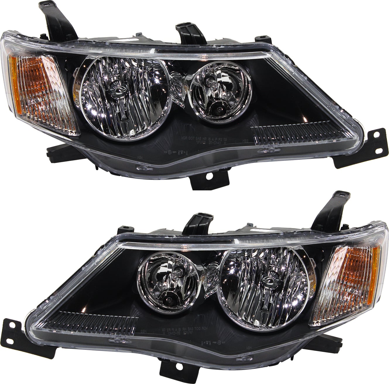 Headlight Assembly Pair/Set for 2007-2009 Mitsubishi Outlander, Right (Passenger) and Left (Driver), Halogen Replacement