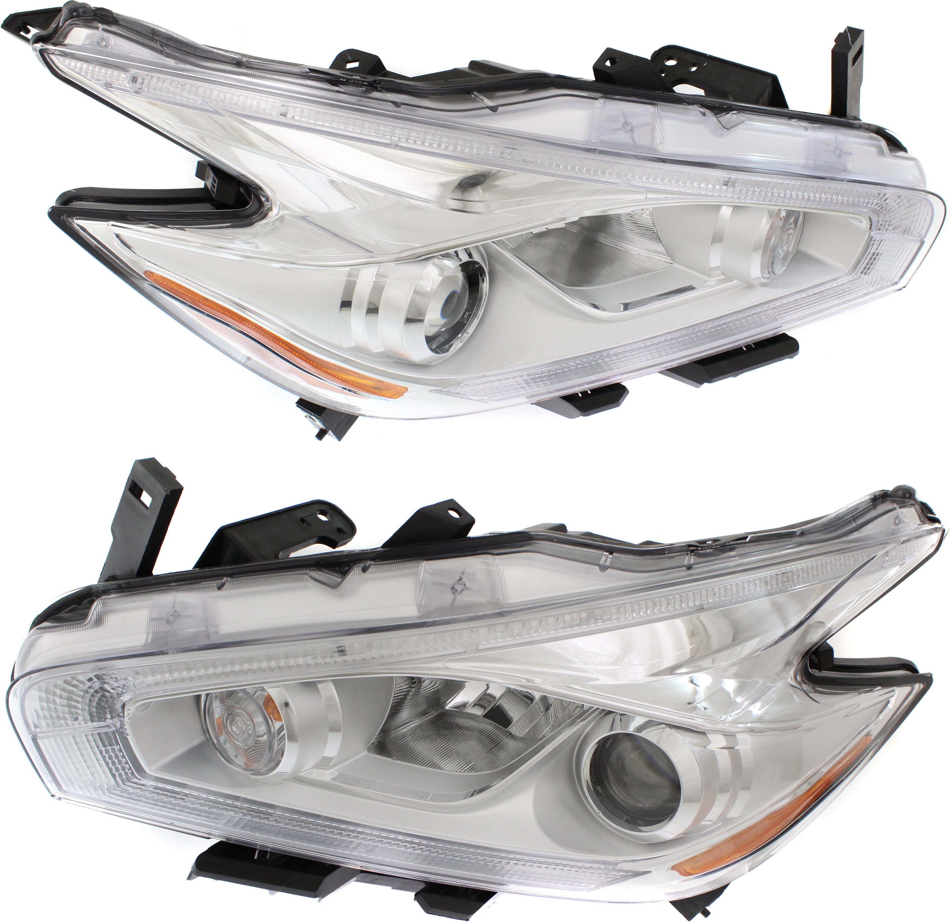 Headlight Assembly Pair/Set for Nissan Murano 2003-2007, Right (Passenger) and Left (Driver), Halogen, with Chrome Interior, Replacement