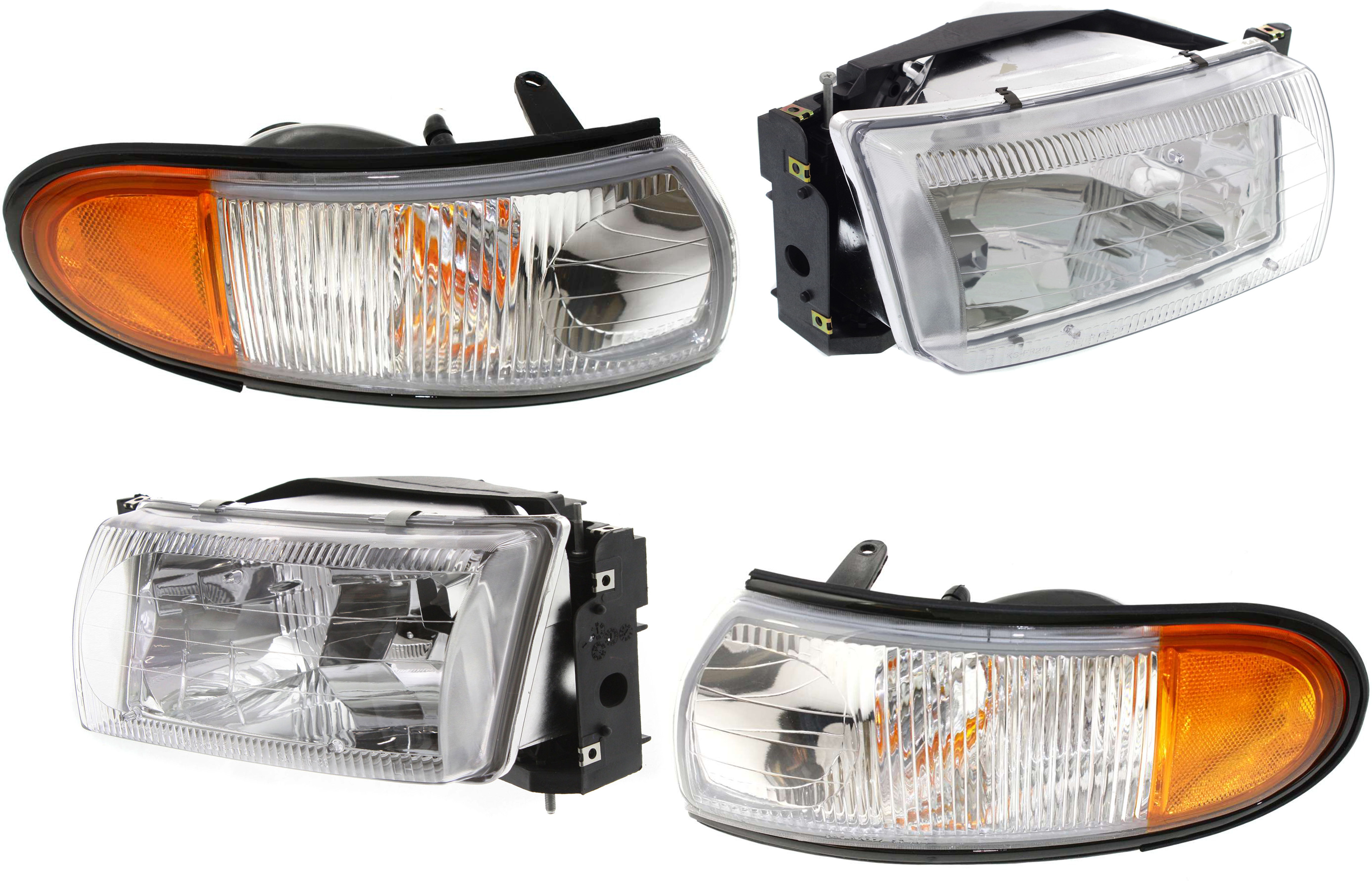 Headlight Assembly Kit for 1996-1998 Mercury Quest/Villager, Right (Passenger) and Left (Driver), Halogen, with Corner Lights, 4-Piece Kit, Replacement
