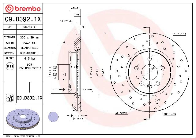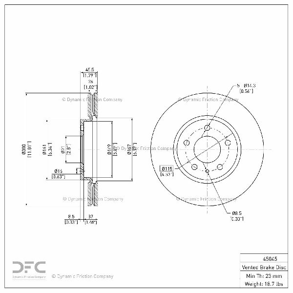For FMSI Pad No. D1467; Vented; 5 Bolt Holes; 300mm Dia.; 45.5mm Height; 26mm Thick; 70.8mm Center Hole Dia.