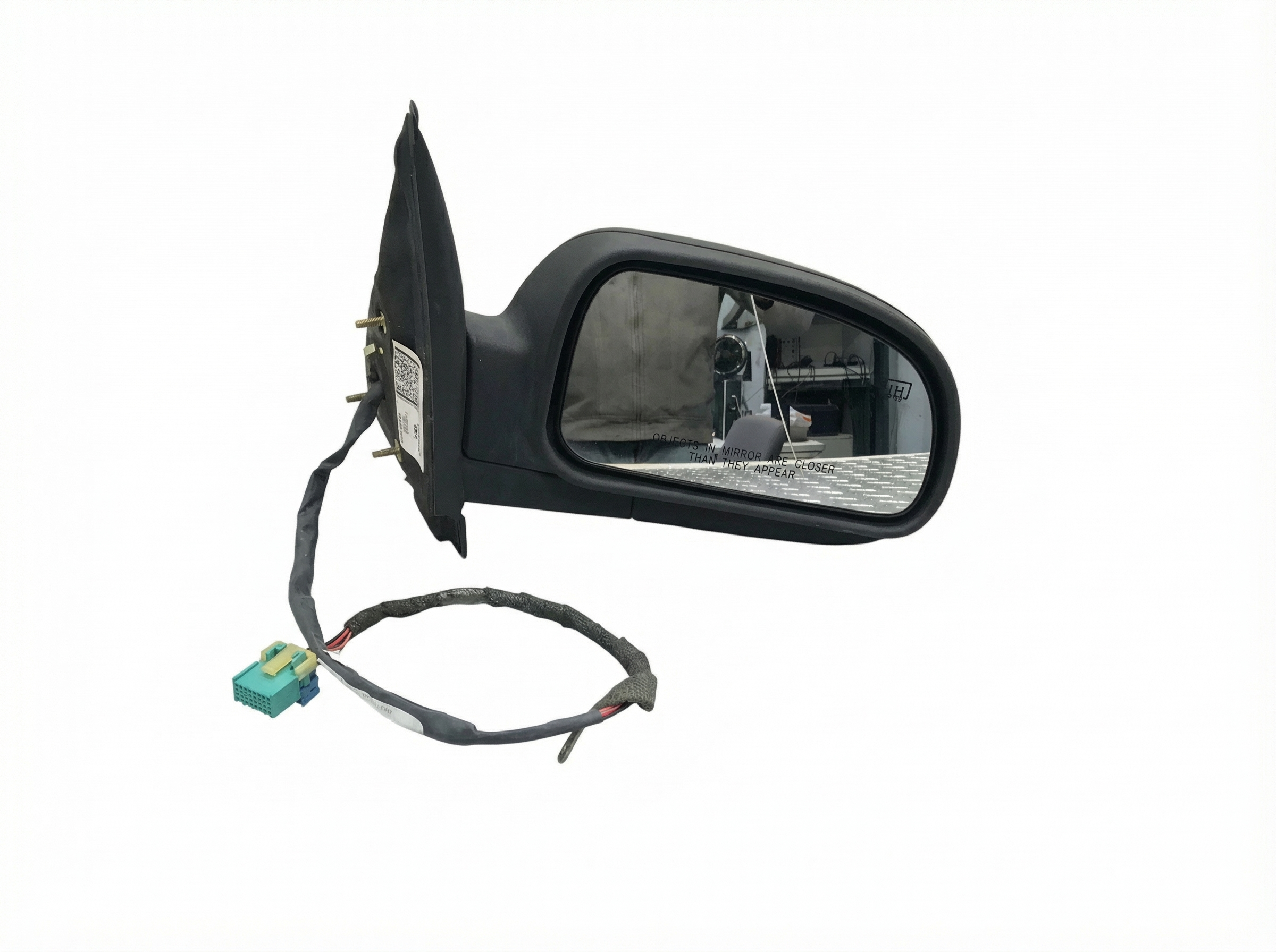This side view mirror is for a 4-door vehicle. It features power mirrors for easy adjustment. There is no damage to this part.