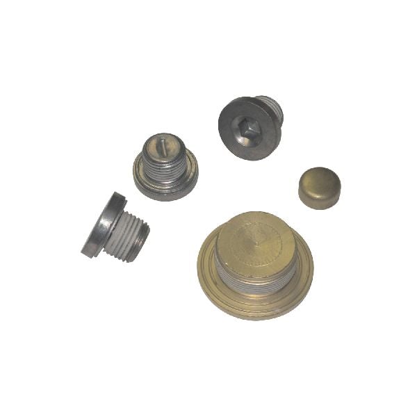 3 Steel Coolant/Oil Plugs w/Sealant; 1 Large Brass Plug Coolant Drain; 1 Small Brass Plug For Front Of Oil Galley; 1 Plastic Oil Galley Plug