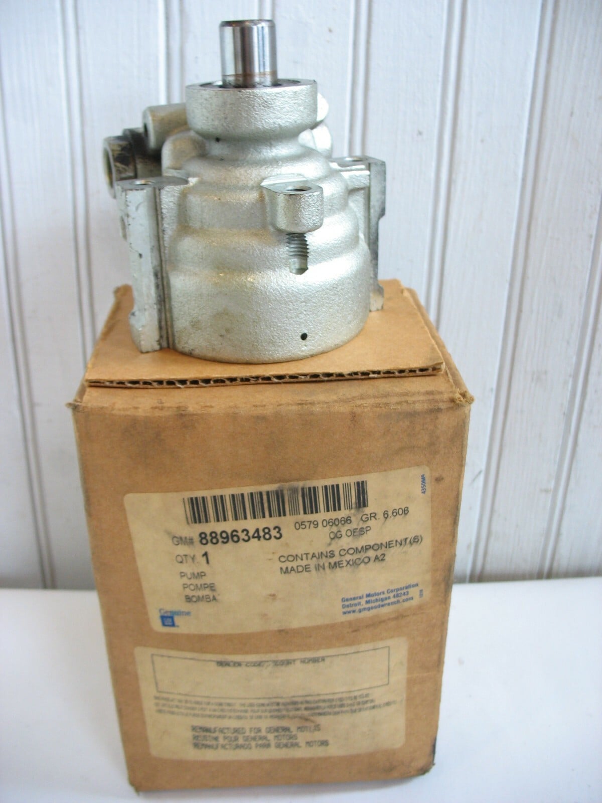It is a power steering pump and motor for a 5.3L 8-cylinder engine. This part includes the reservoir.