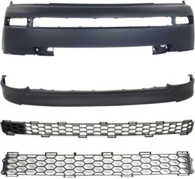 Front Valance for Scion XB 2004-2006, 4-Piece Kit with Bumper Cover and Bumper Grilles, Replacement