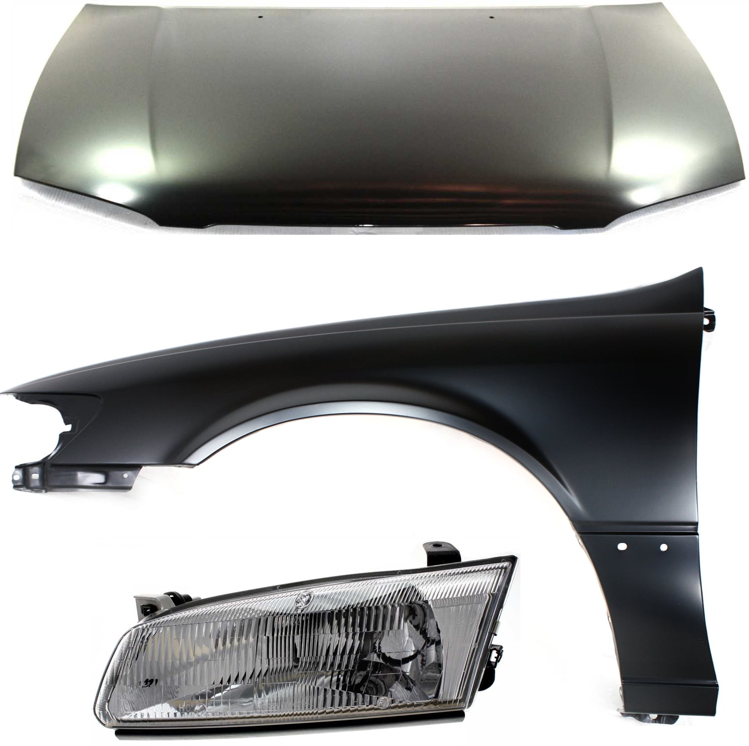 Hood Panel for 1997-1999 Toyota Camry, 3-Piece Kit, Made in USA, Includes Left (Driver) Fender and Headlight - Replacement