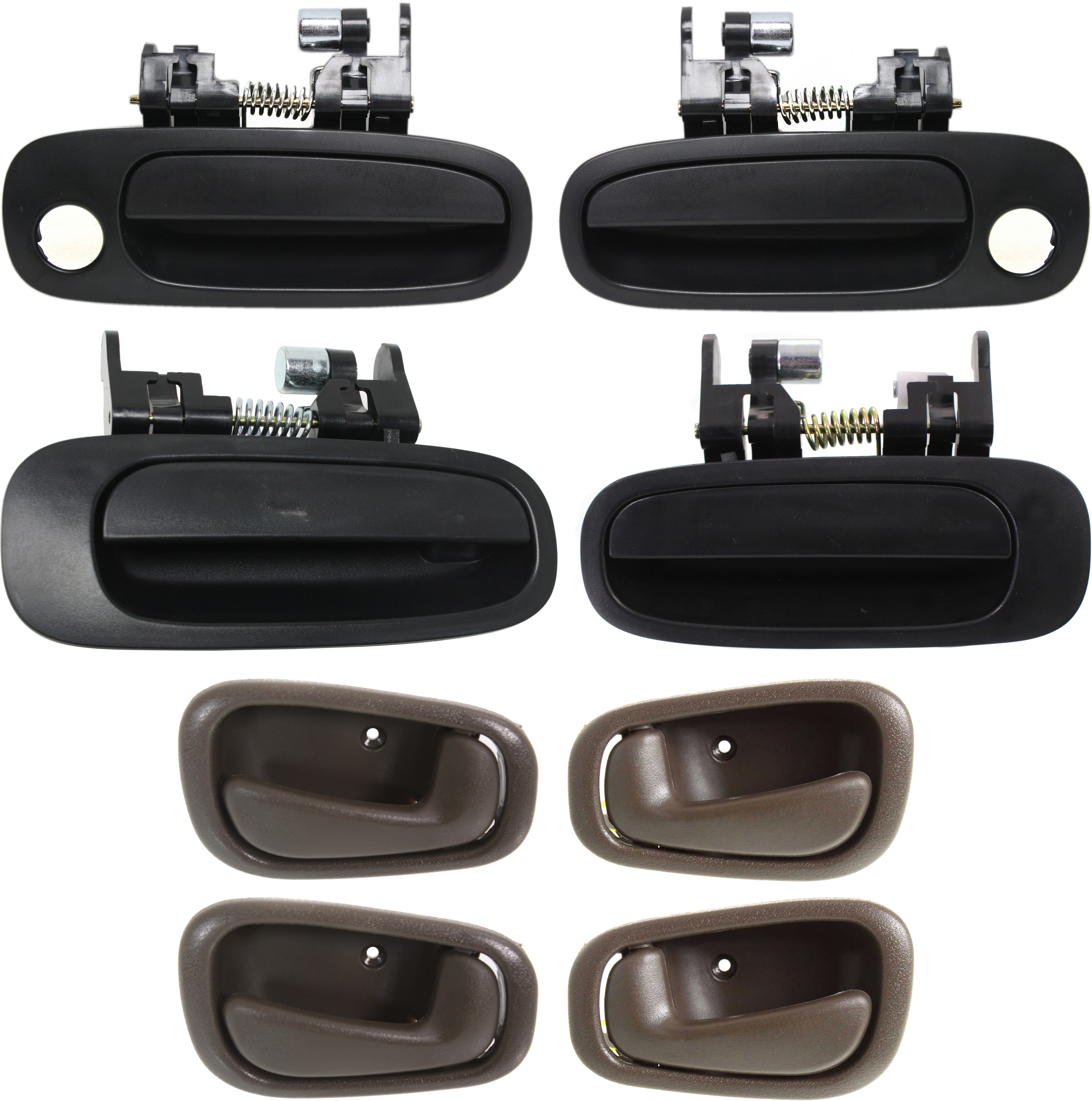 Front and Rear Inside Door Handle Pair/Set for 1989-1992 Prizm and 1995-2000 Tacoma, Right (Passenger), Left (Driver), Brown, Pair/Set of 4, Replacement