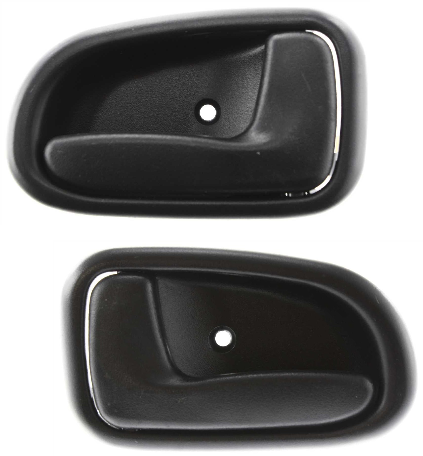 Front Interior Door Handle Pair/Set for 1993-1997 Toyota Prizm, Right (Passenger) and Left (Driver), Black Plastic, Identical to Rear, Replacement