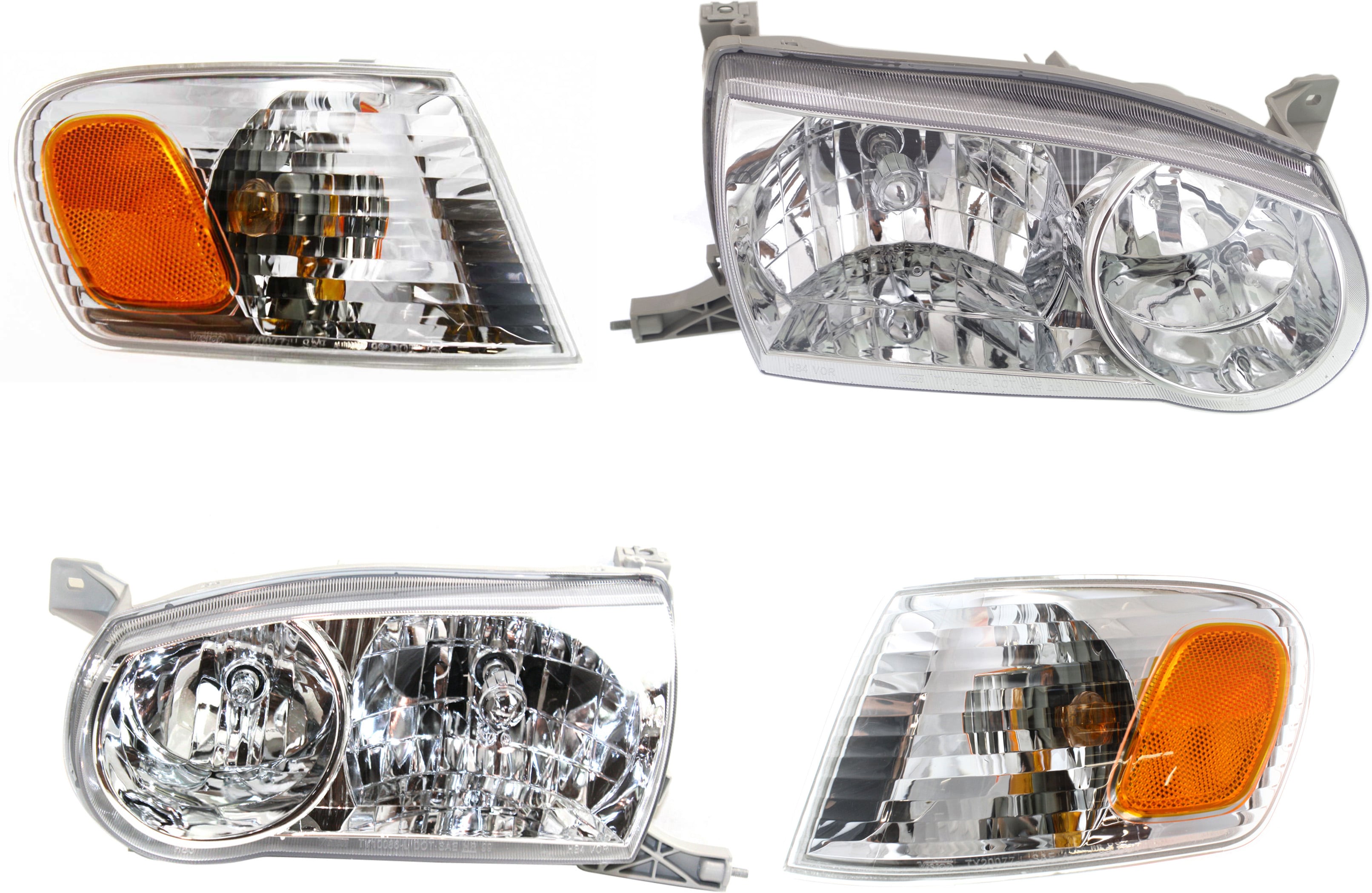 Headlight Assembly Kit for 1998-2000 Toyota Corolla, Right (Passenger) and Left (Driver), Halogen, 4-Piece kit with Corner Lights, Replacement