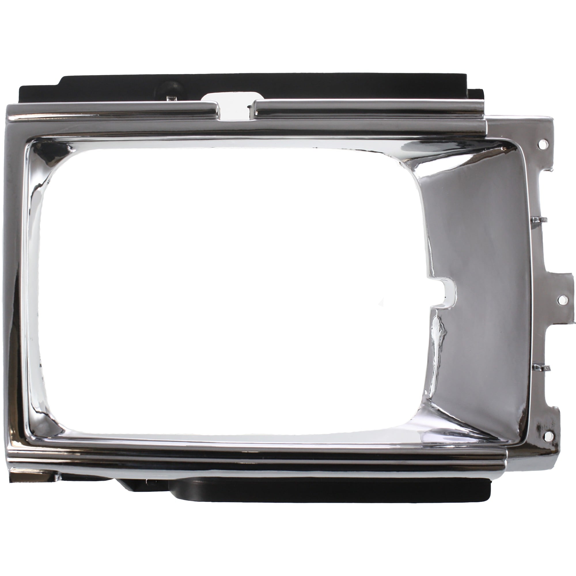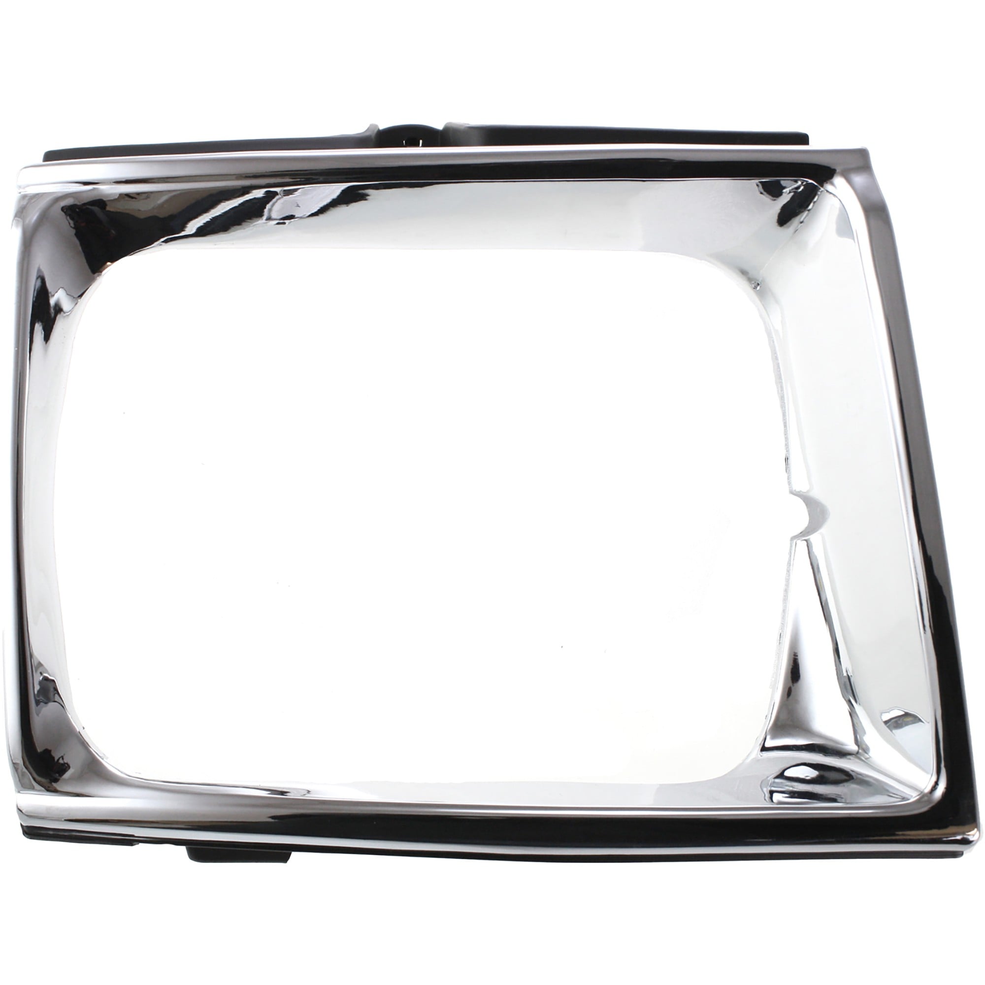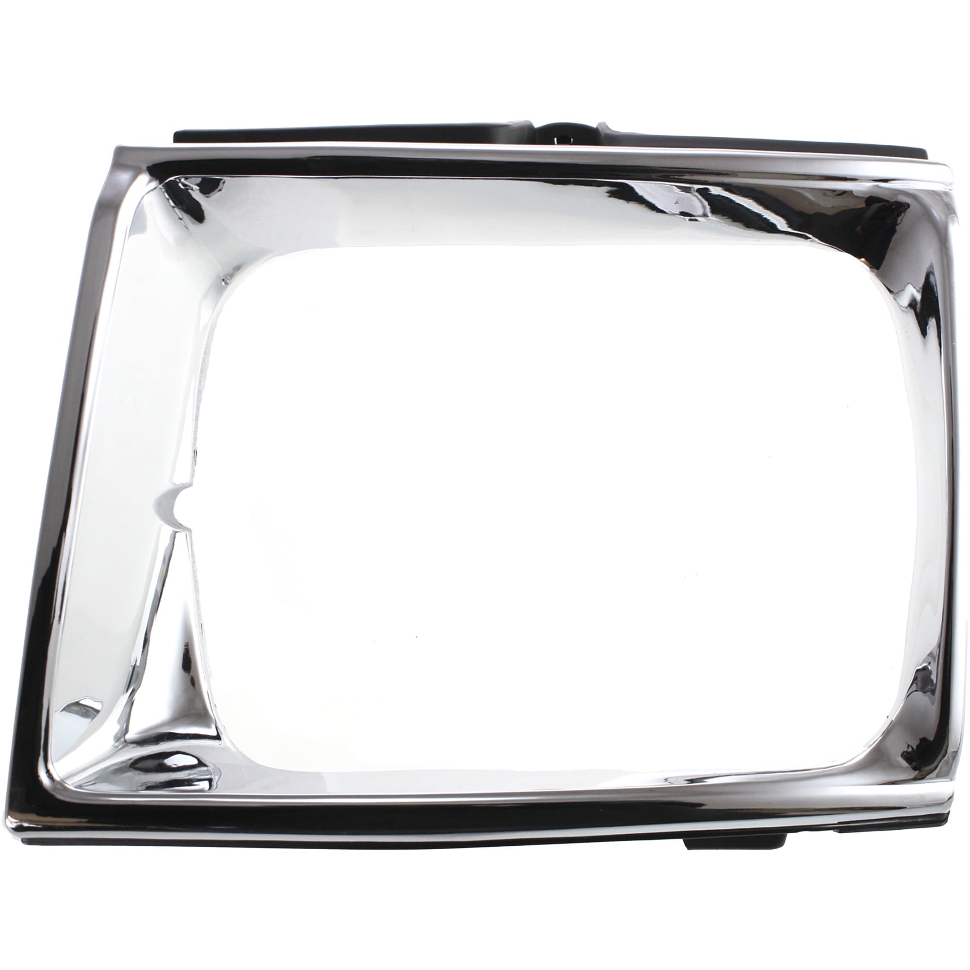 This is a headlight bezel with a silver and black finish.