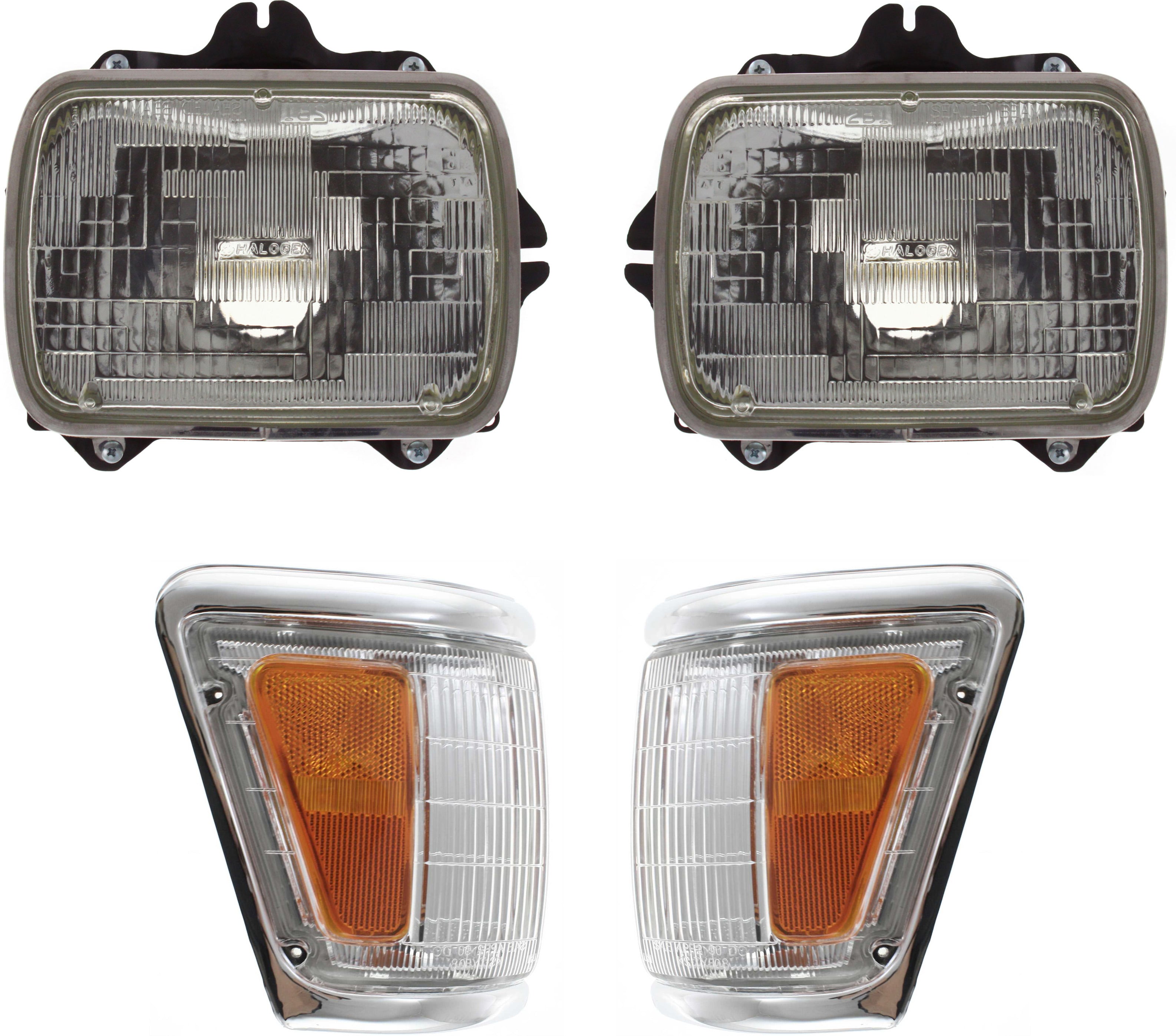 Headlight Assembly for 1992-1995 Toyota Pickup, Right (Passenger) and Left (Driver), Halogen, 4-Piece kit with Corner Lights, Replacement