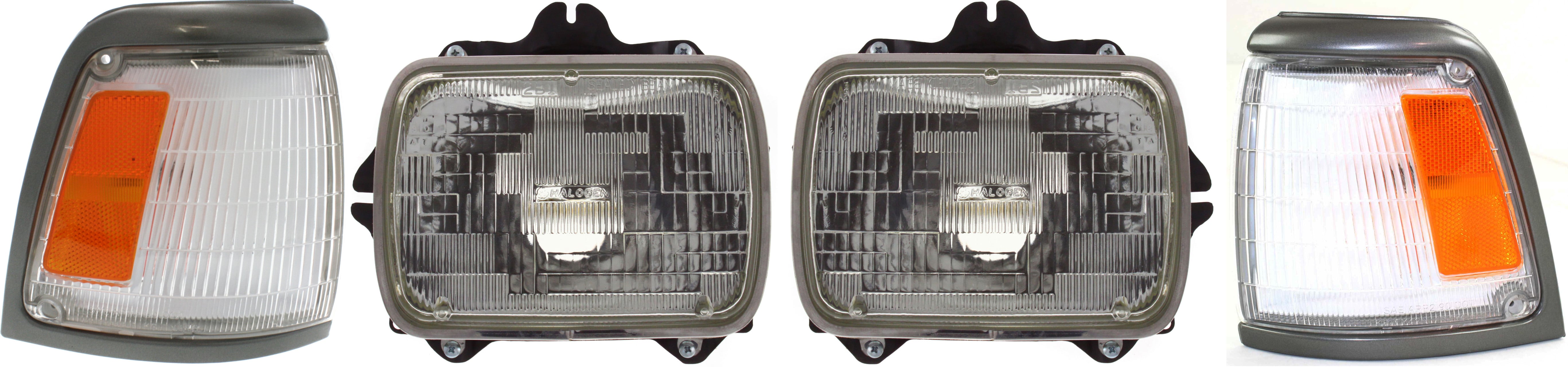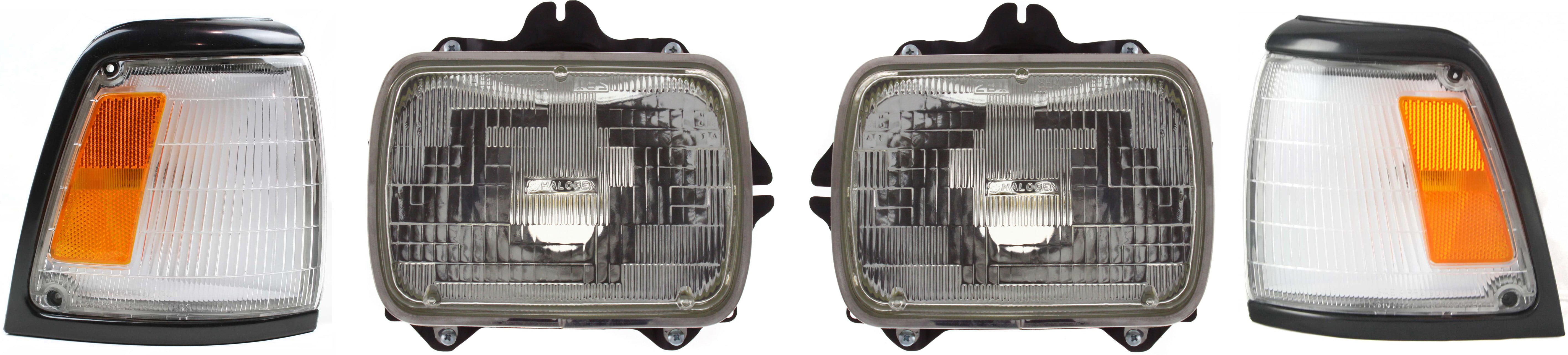 Headlight Assembly Kit for Toyota Pickup 1992-1995, Right (Passenger) and Left (Driver), Halogen, 4-Piece Kit with Corner Lights, Replacement