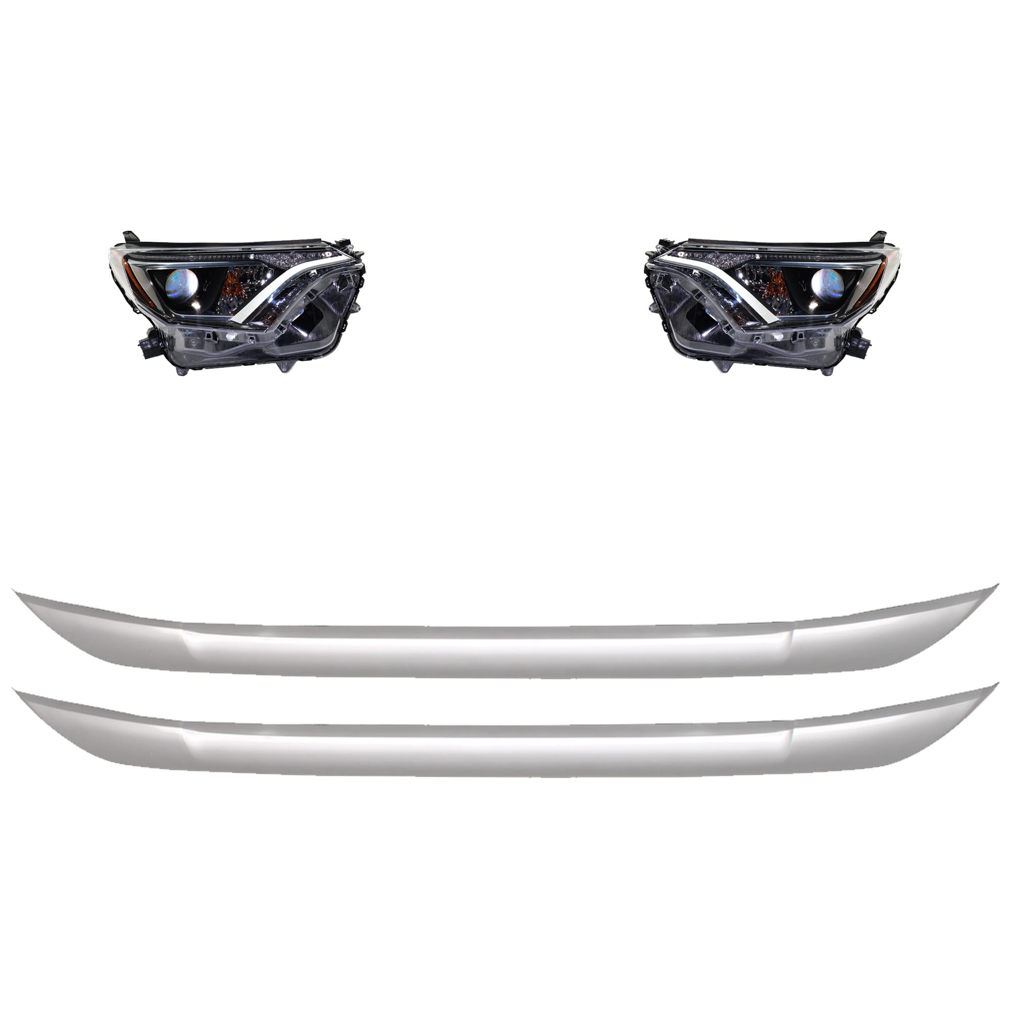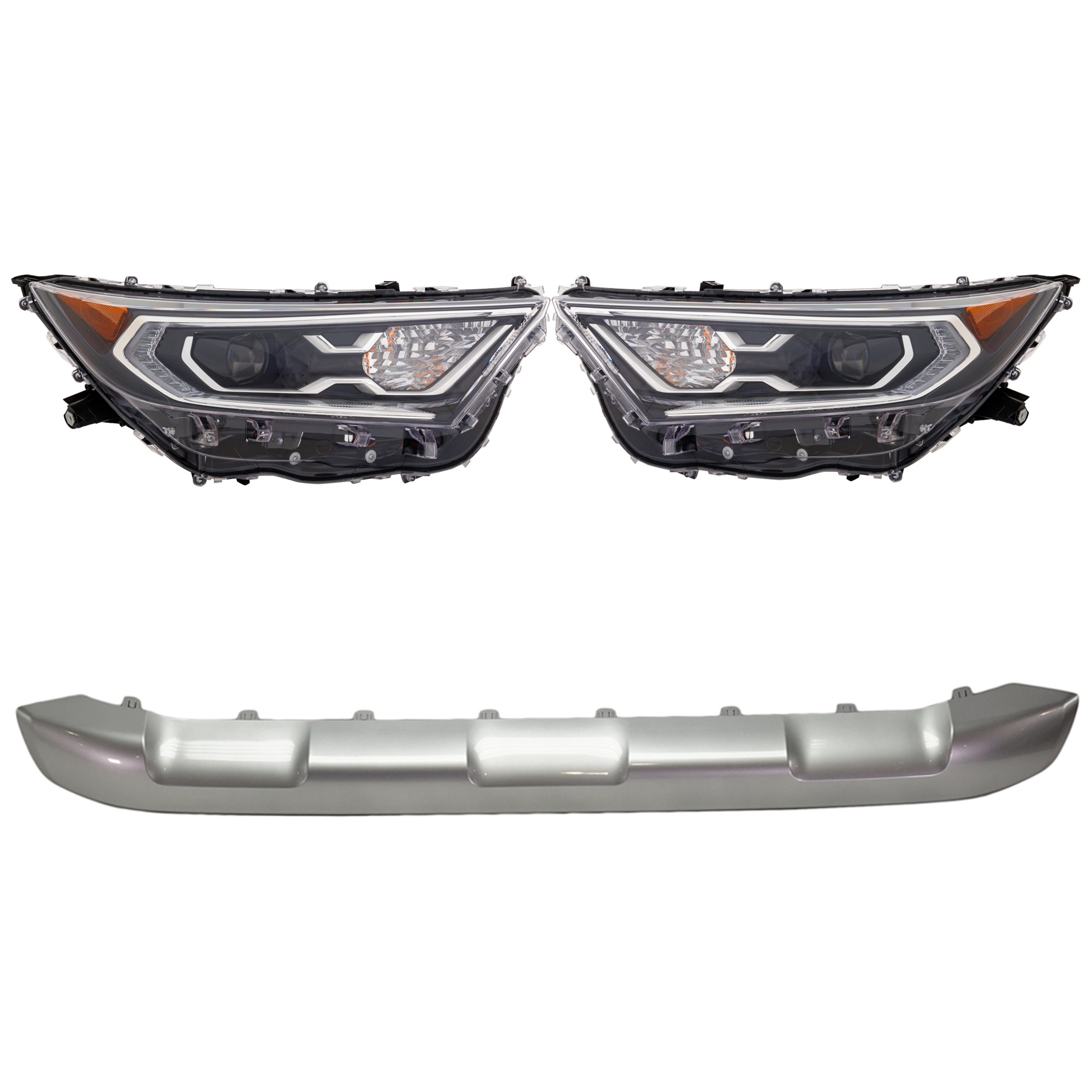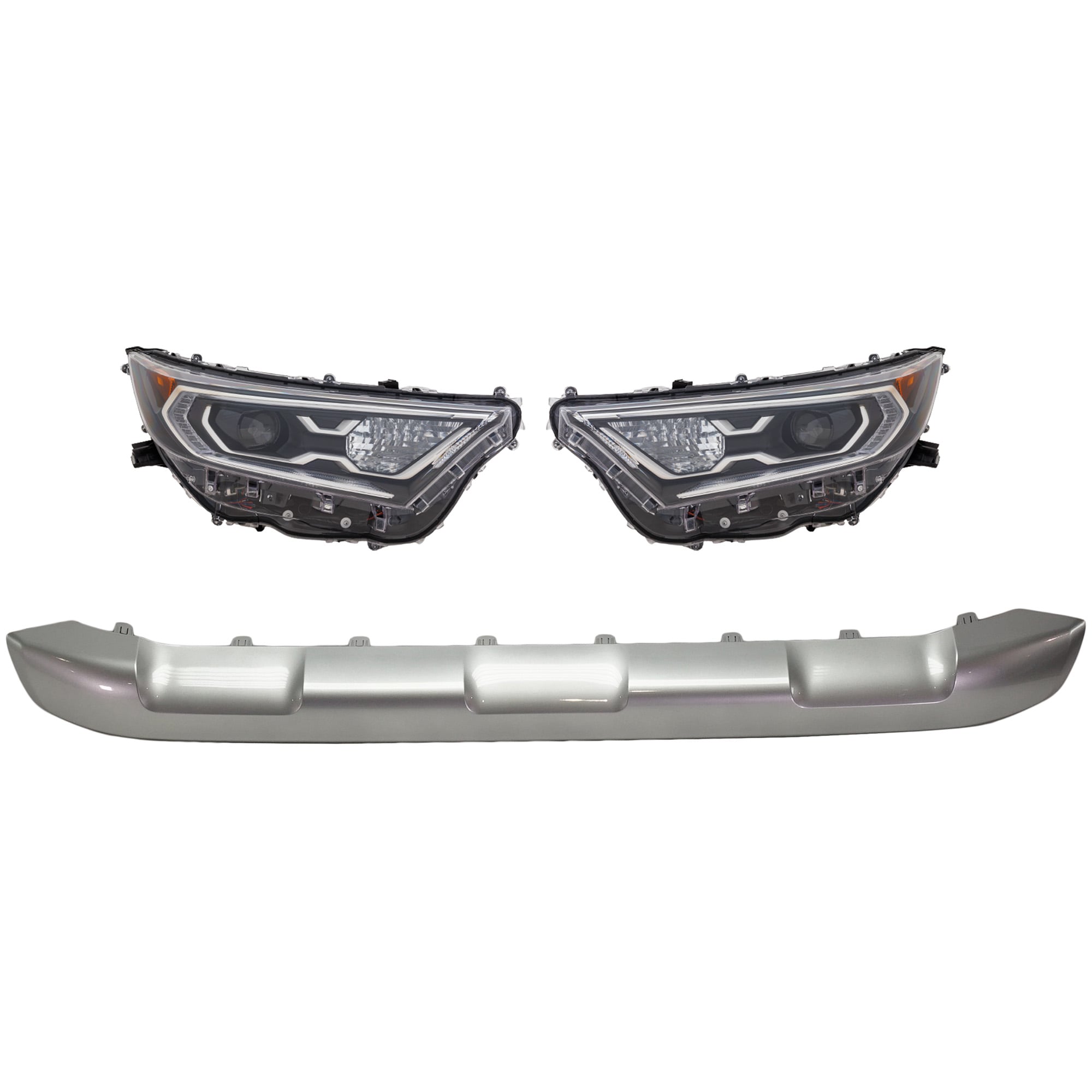 Headlight Assembly Kit for Toyota RAV4 2019-2021, Right (Passenger) and Left (Driver), 3-Piece, LED, with Bumper Trim, Replacement