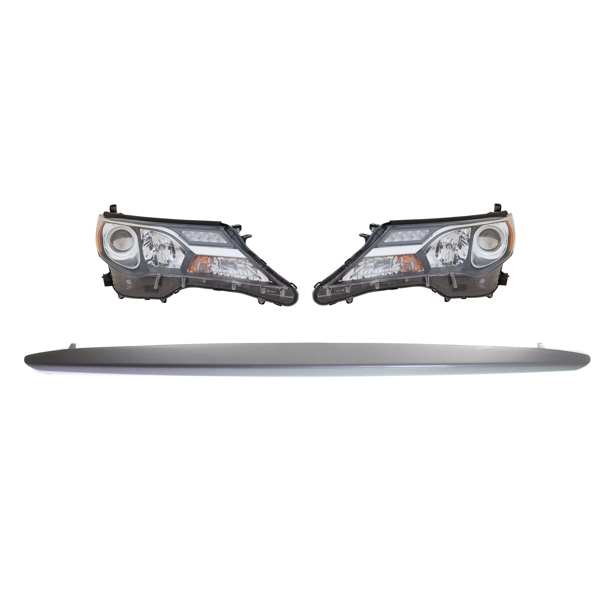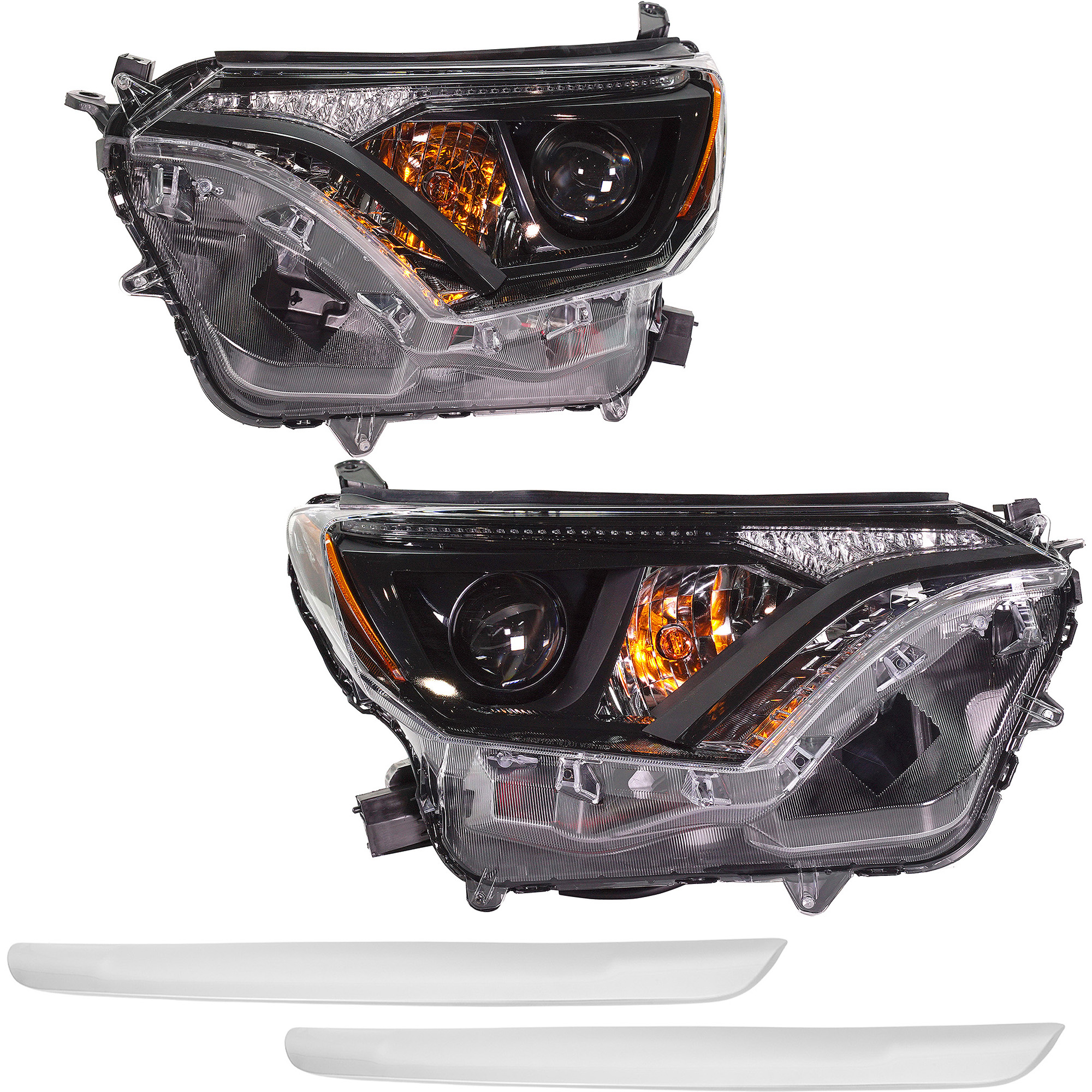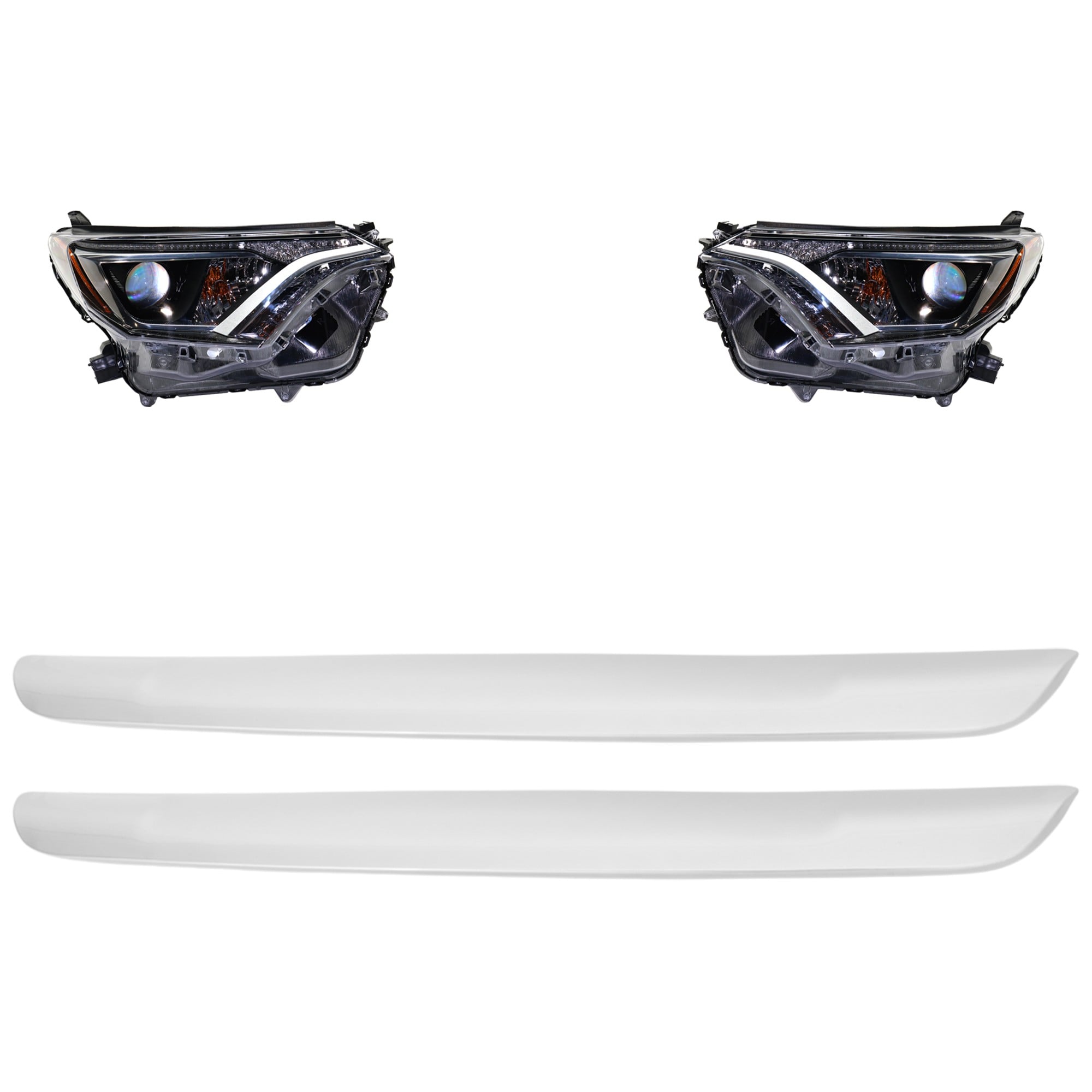 Headlight Assembly Kit for Toyota RAV4 2019-2021, Right (Passenger) and Left (Driver), 3-Piece, LED, with Bumper Trim, Replacement