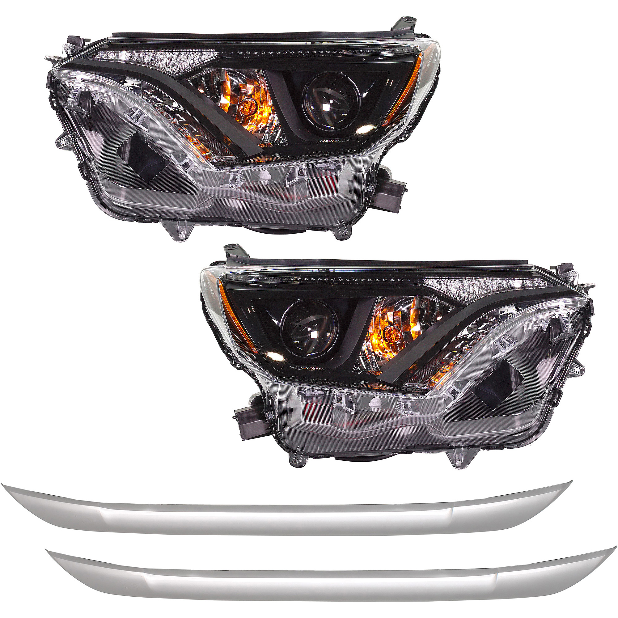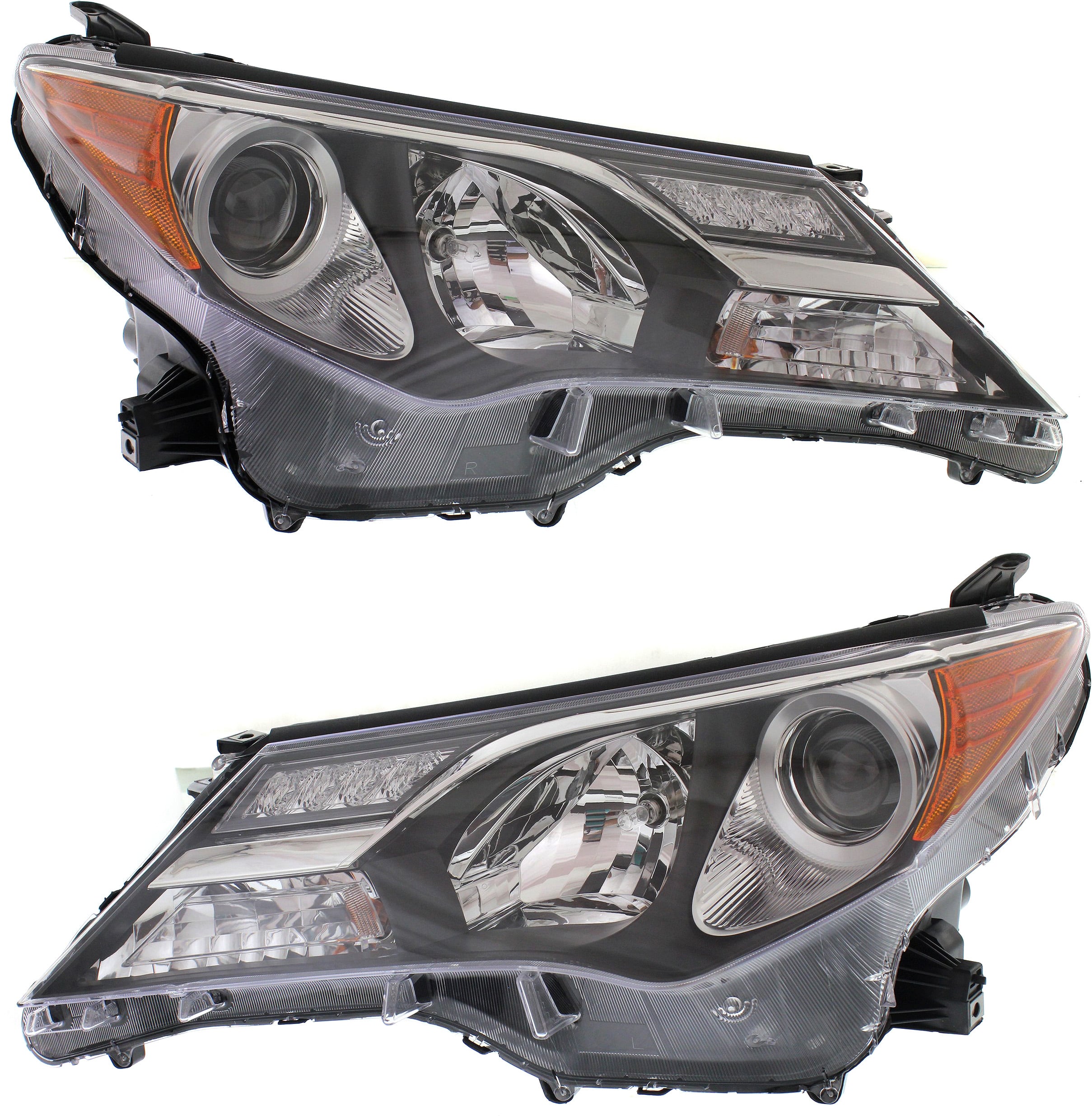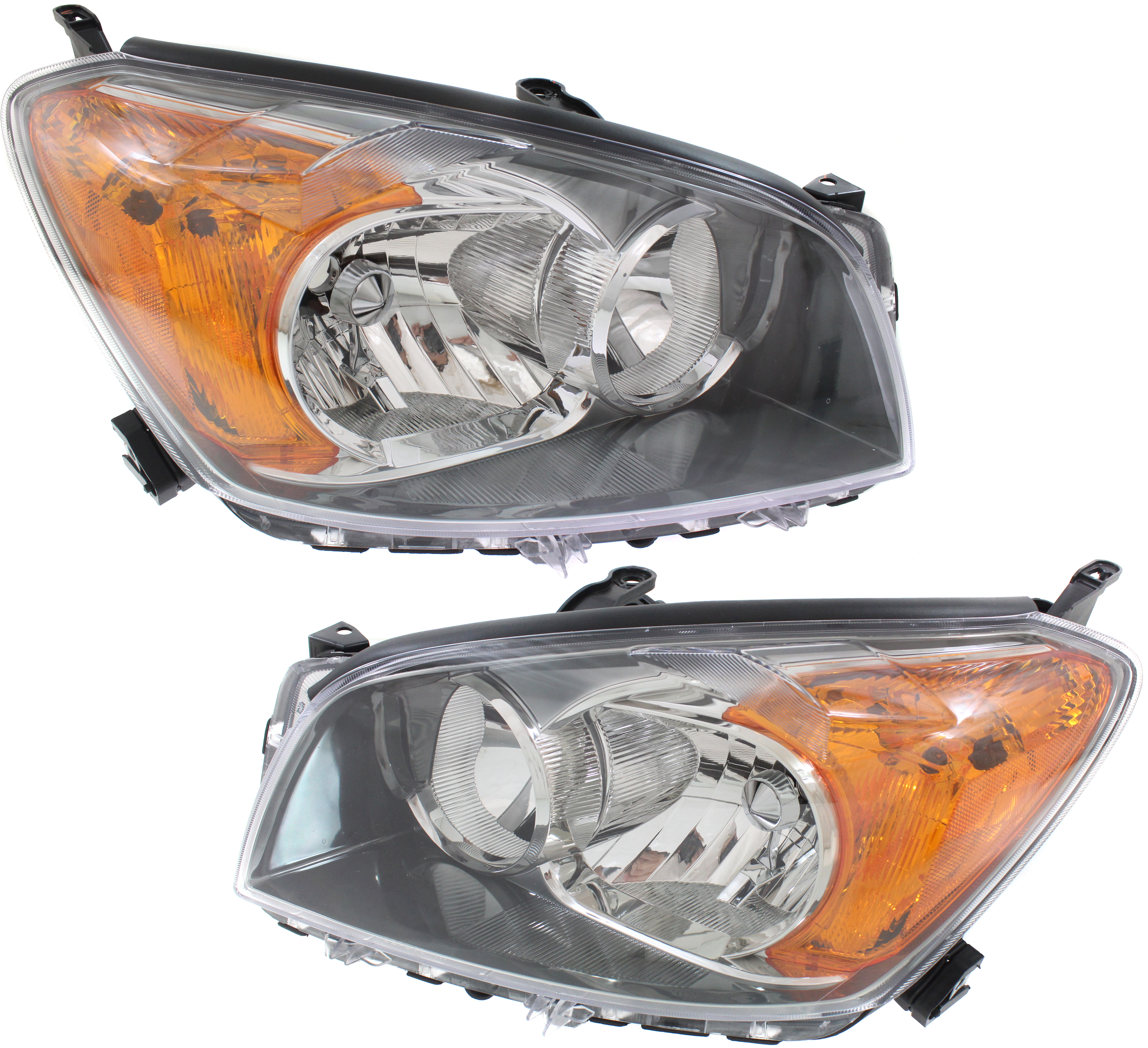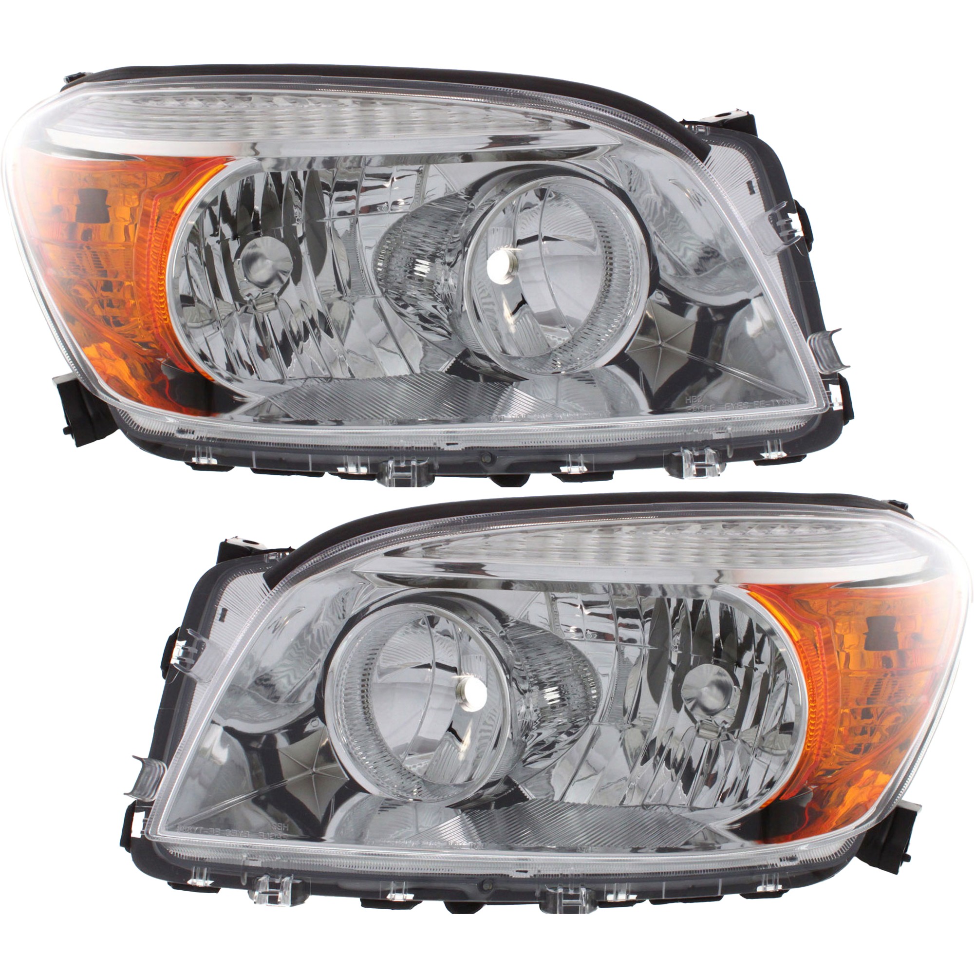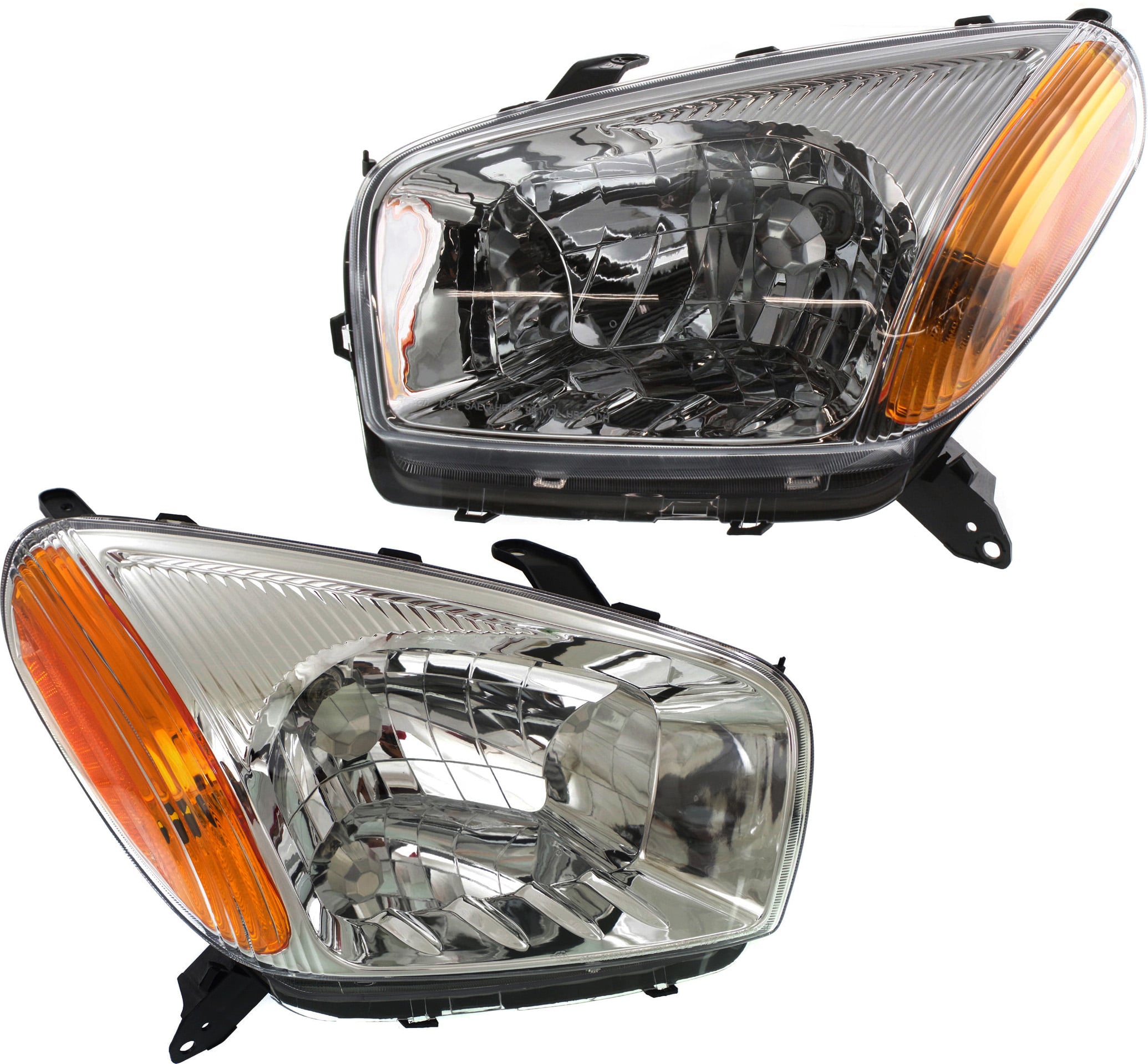 Headlight Assembly Pair/Set for Toyota RAV4 2001-2003, Right (Passenger) and Left (Driver), Halogen, Chrome Interior, without Sport Package, Replacement
