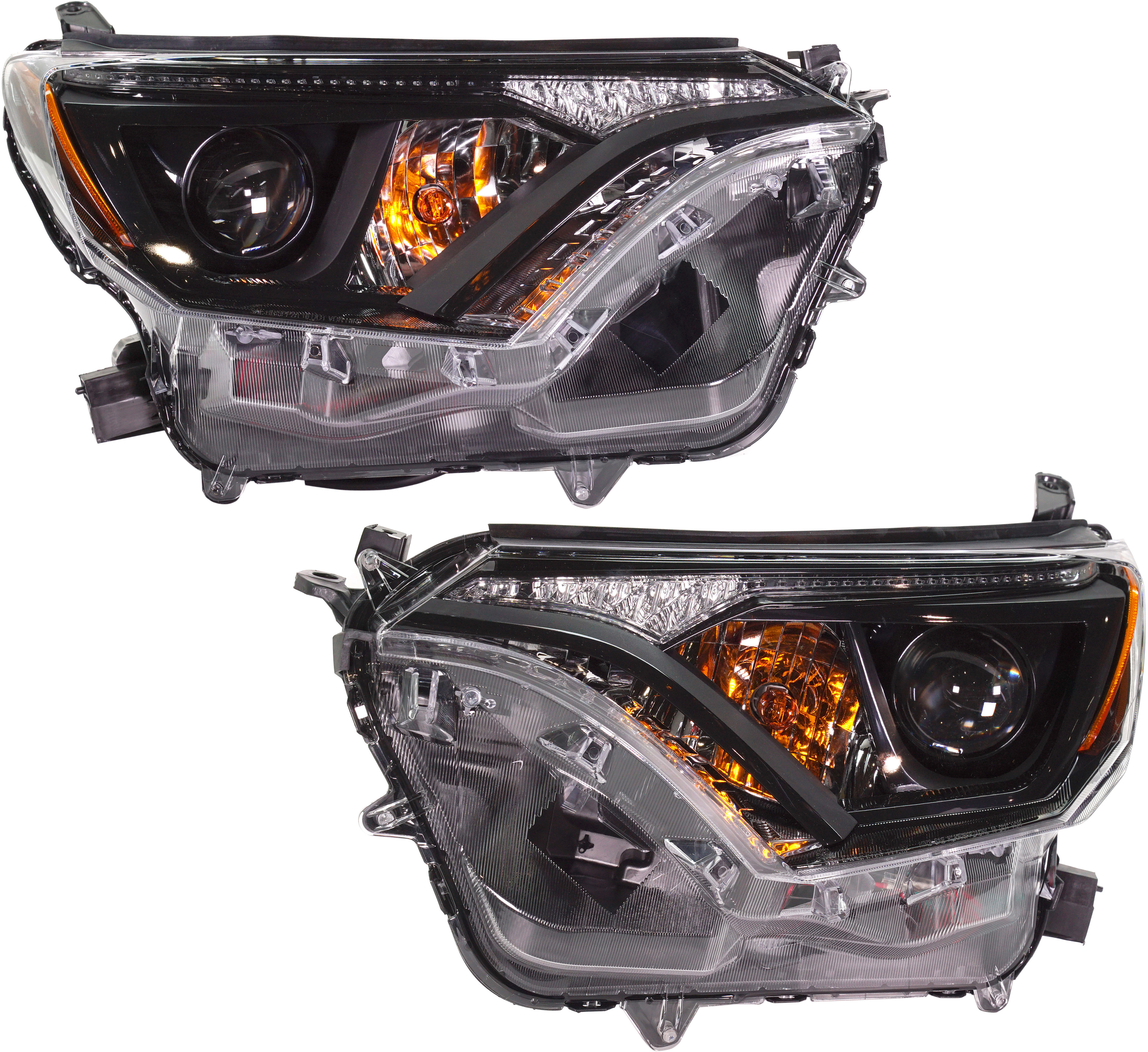 Headlight Pair/Set for Toyota RAV4 2006-2008 Sport Model, Clear Lens, Black Interior, Right (Passenger) and Left (Driver) Sides with Lens and Housing, Replacement