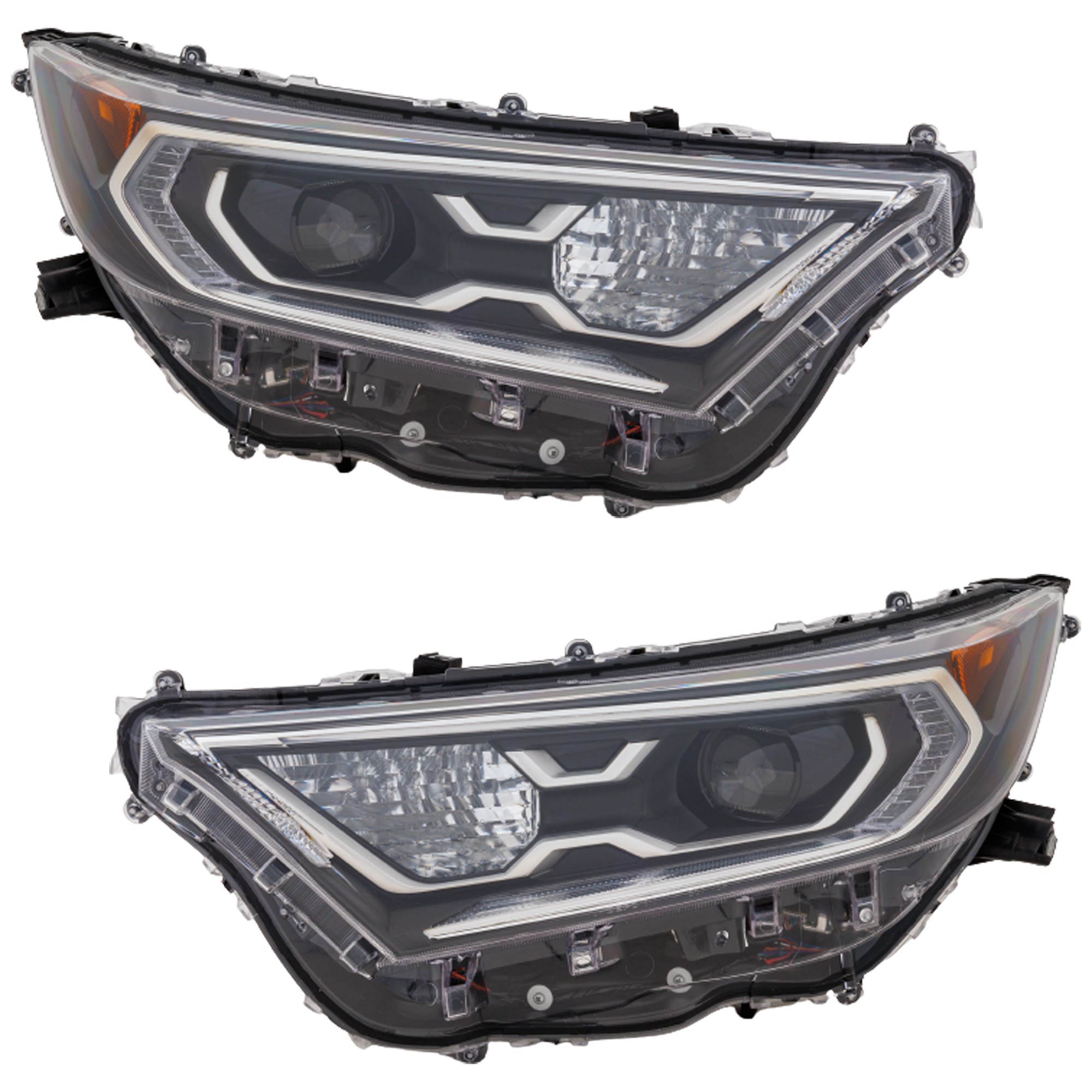 Headlight Assembly Kit for Toyota RAV4 2019-2021, Right (Passenger) and Left (Driver), 4-Piece, LED, with Bumper Trim, Replacement