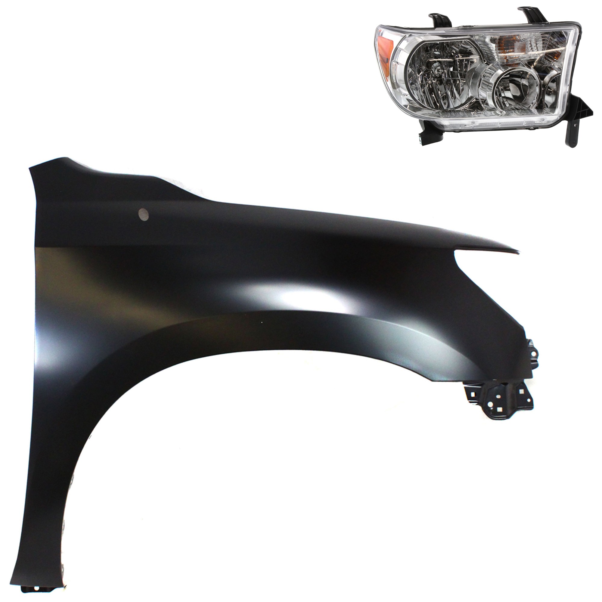 Headlight Assembly for Toyota Tundra 2007-2009 Right (Passenger), Halogen, 2-Piece Kit with Fender, Replacement
