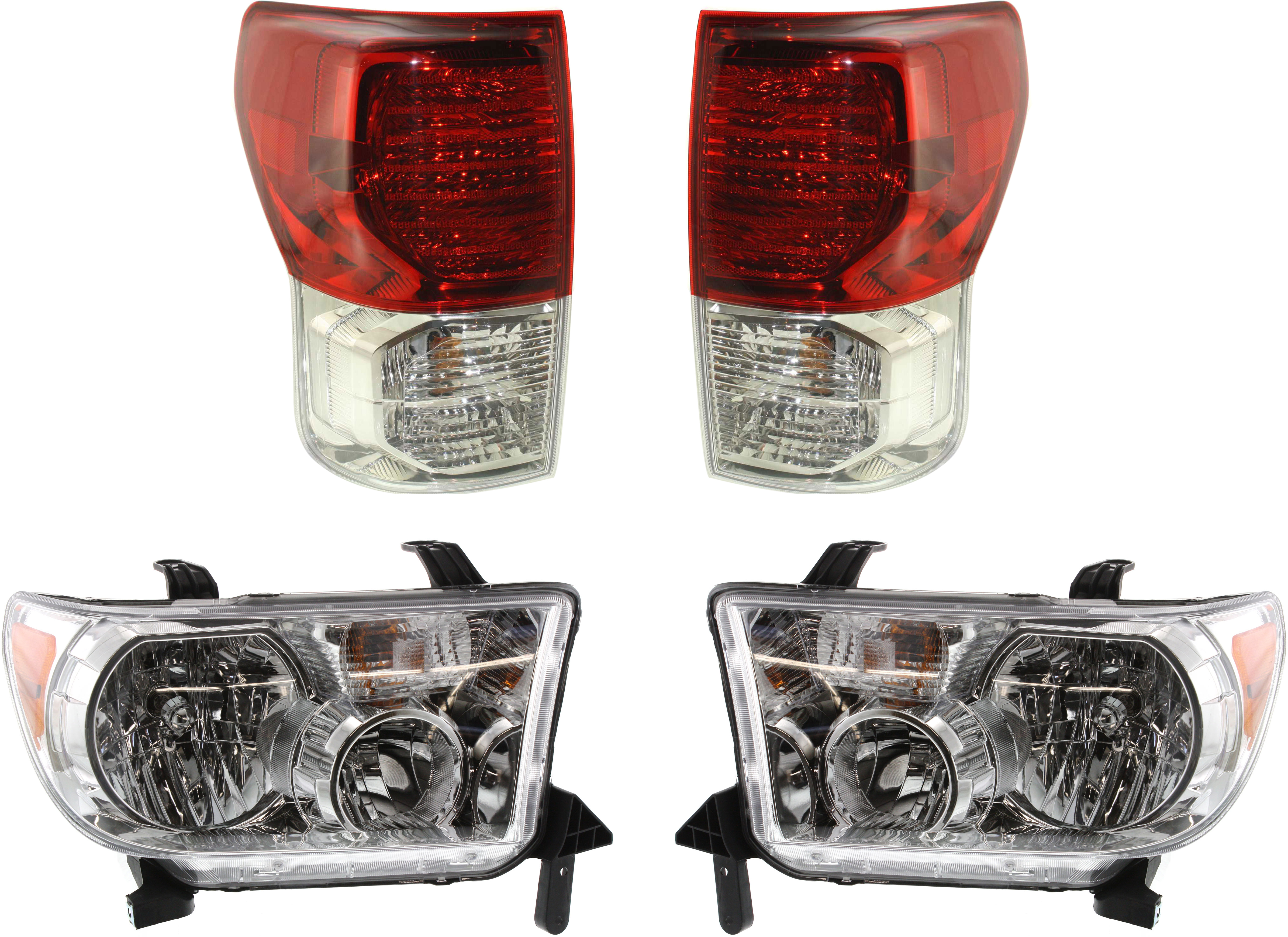 Headlight and Tail Light Assembly Kit for 2010-2013 Toyota Tundra, Right (Passenger) and Left (Driver) Halogen, 4-Piece kit, Replacement