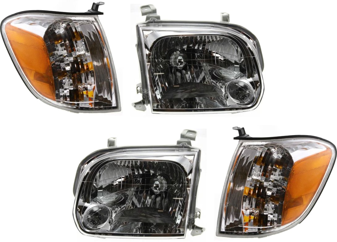 Headlight Assembly for 2005-2007 Toyota Sequoia / 2005-2006 Tundra, Right (Passenger) and Left (Driver), Halogen, 4-Piece kit, with Turn Signal Lights, Replacement