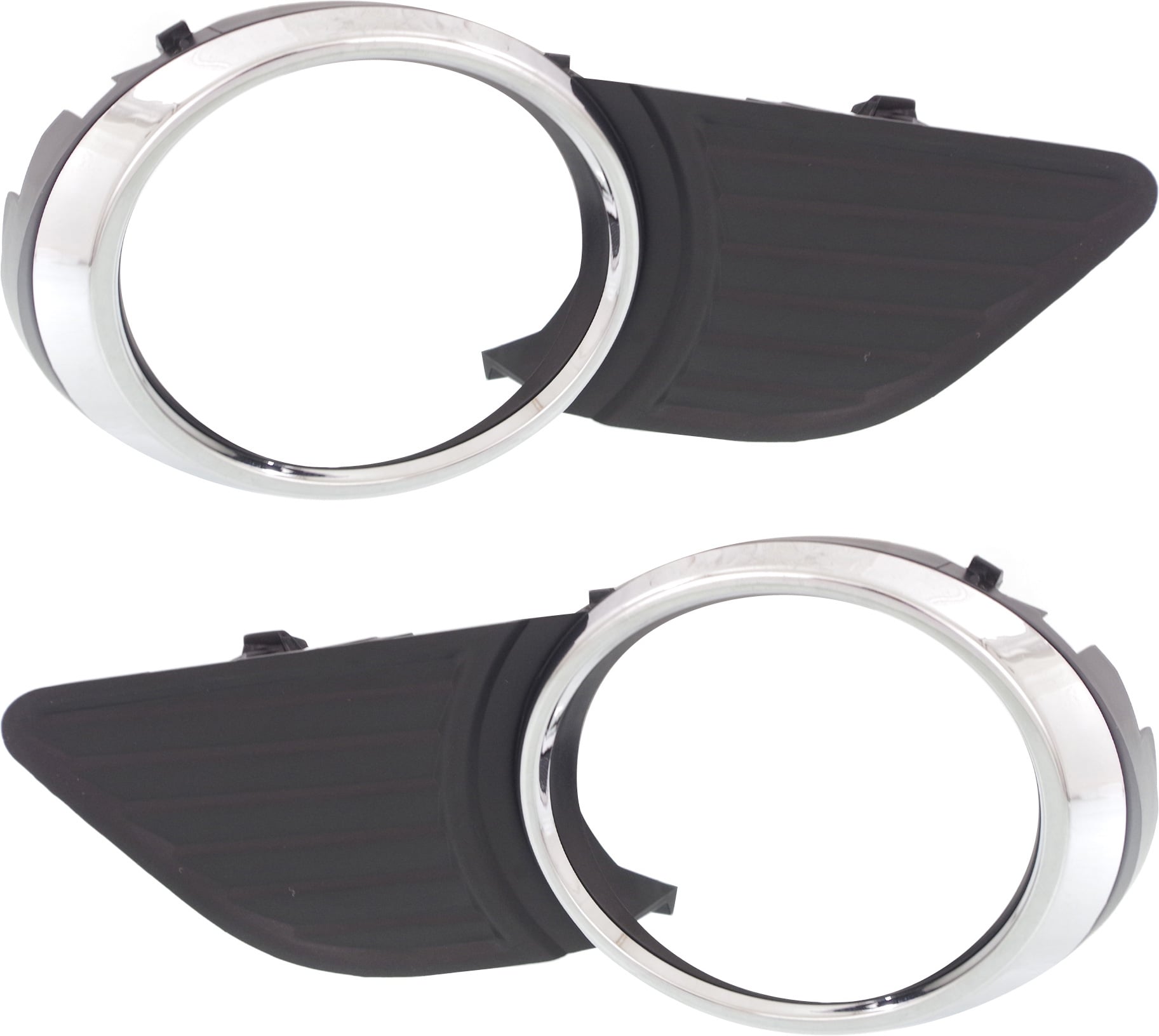 Front Fog Light Molding Pair/Set for Toyota Sienna 2011-2017, Right (Passenger) and Left (Driver), Black with Chrome Trim, with Park Distance Control Sensor Holes, Replacement
