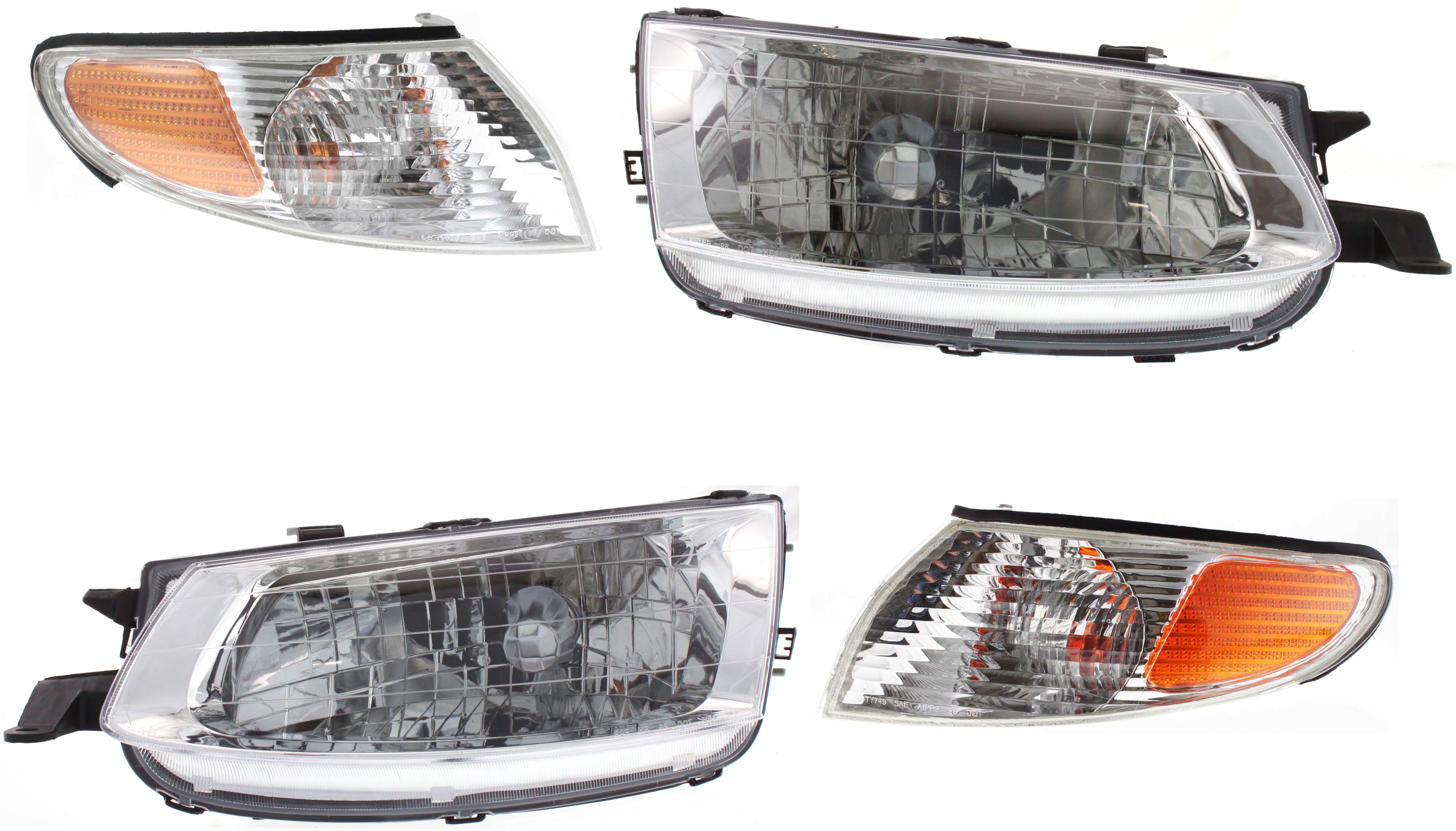 Headlight with Bulbs for Toyota Solara 1999-2001, Right (Passenger) and Left (Driver), with Corner Lights, 4-Piece Kit, Replacement