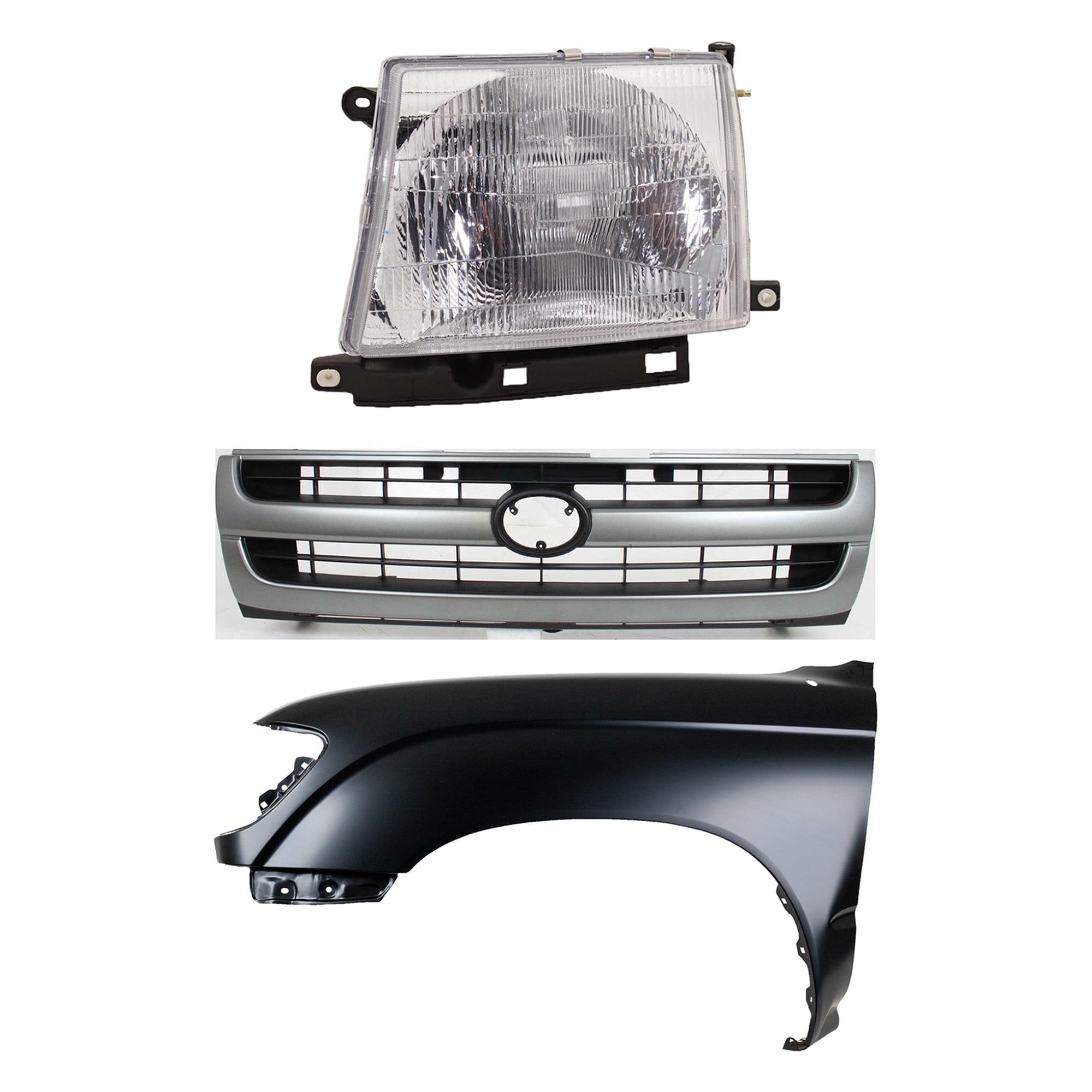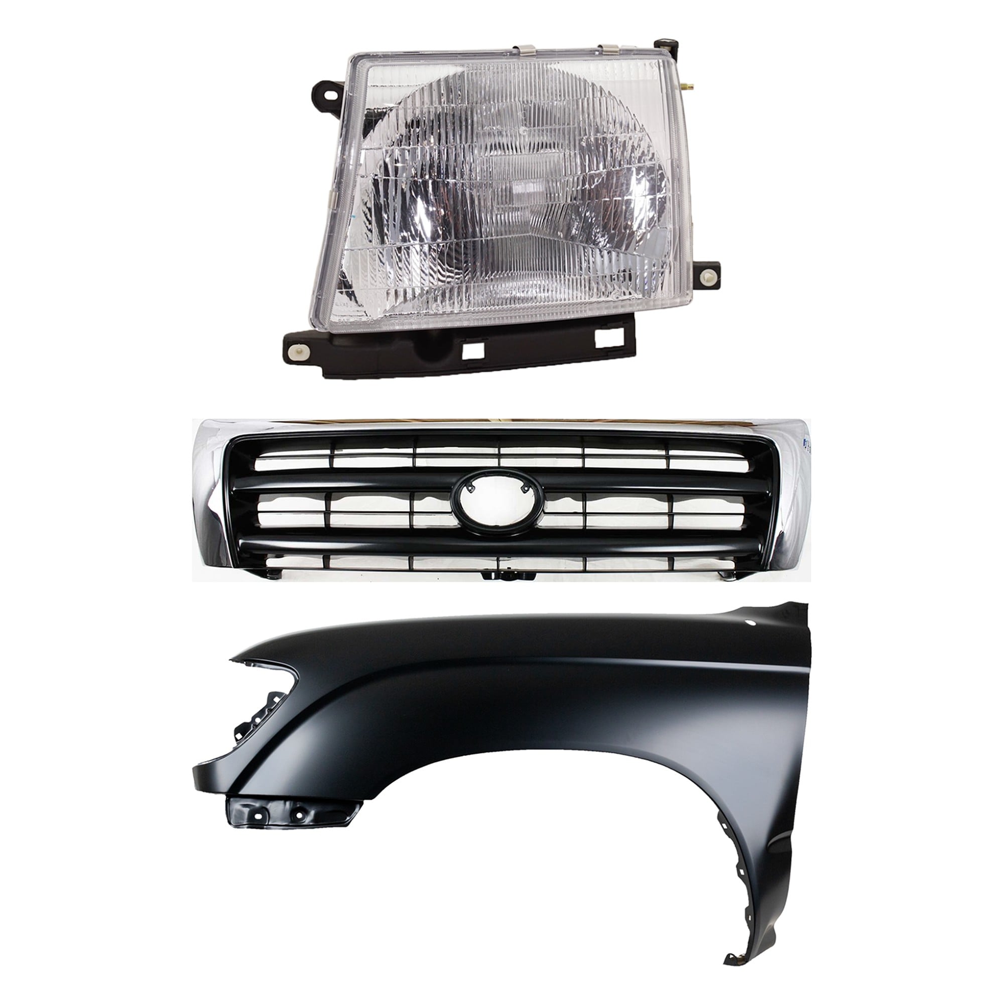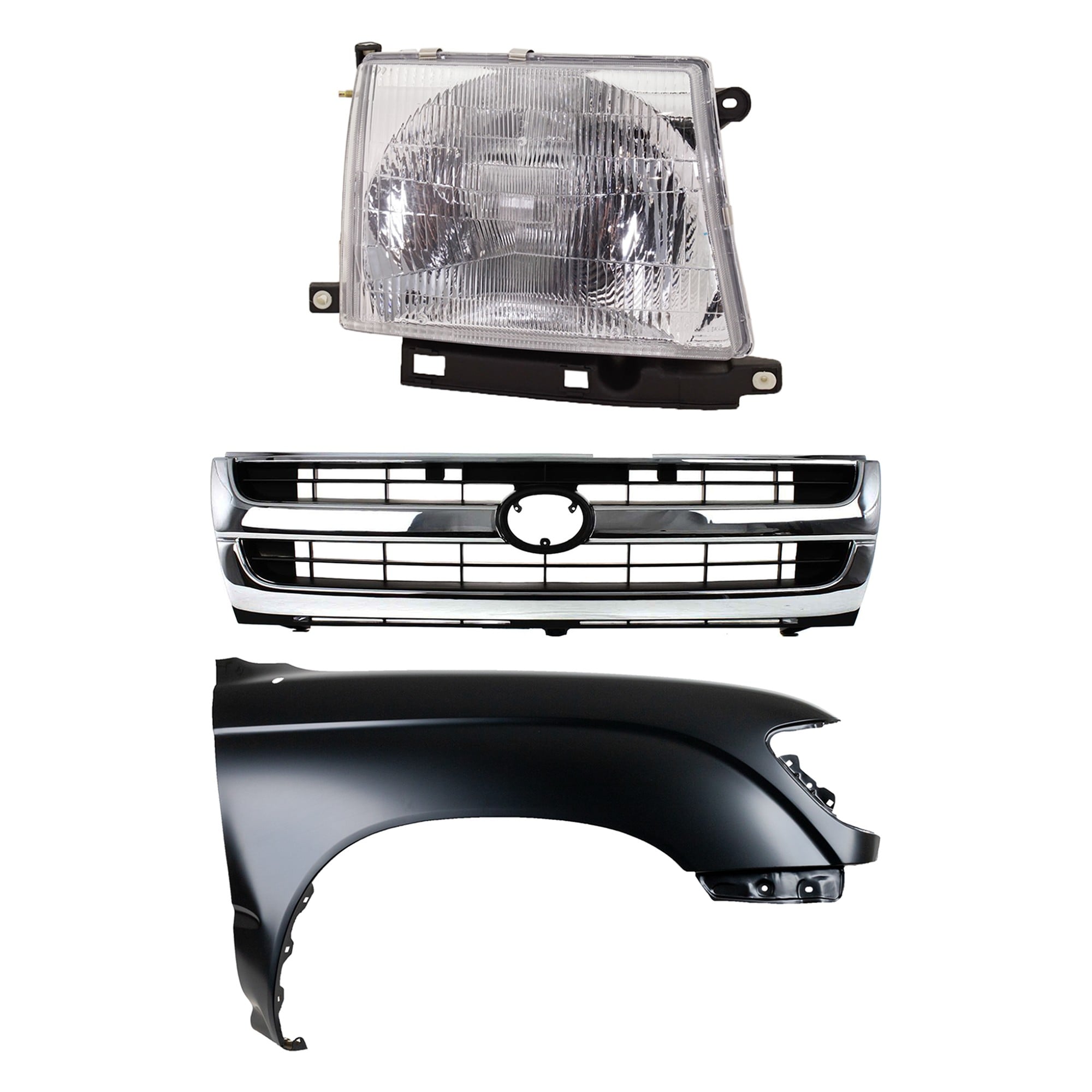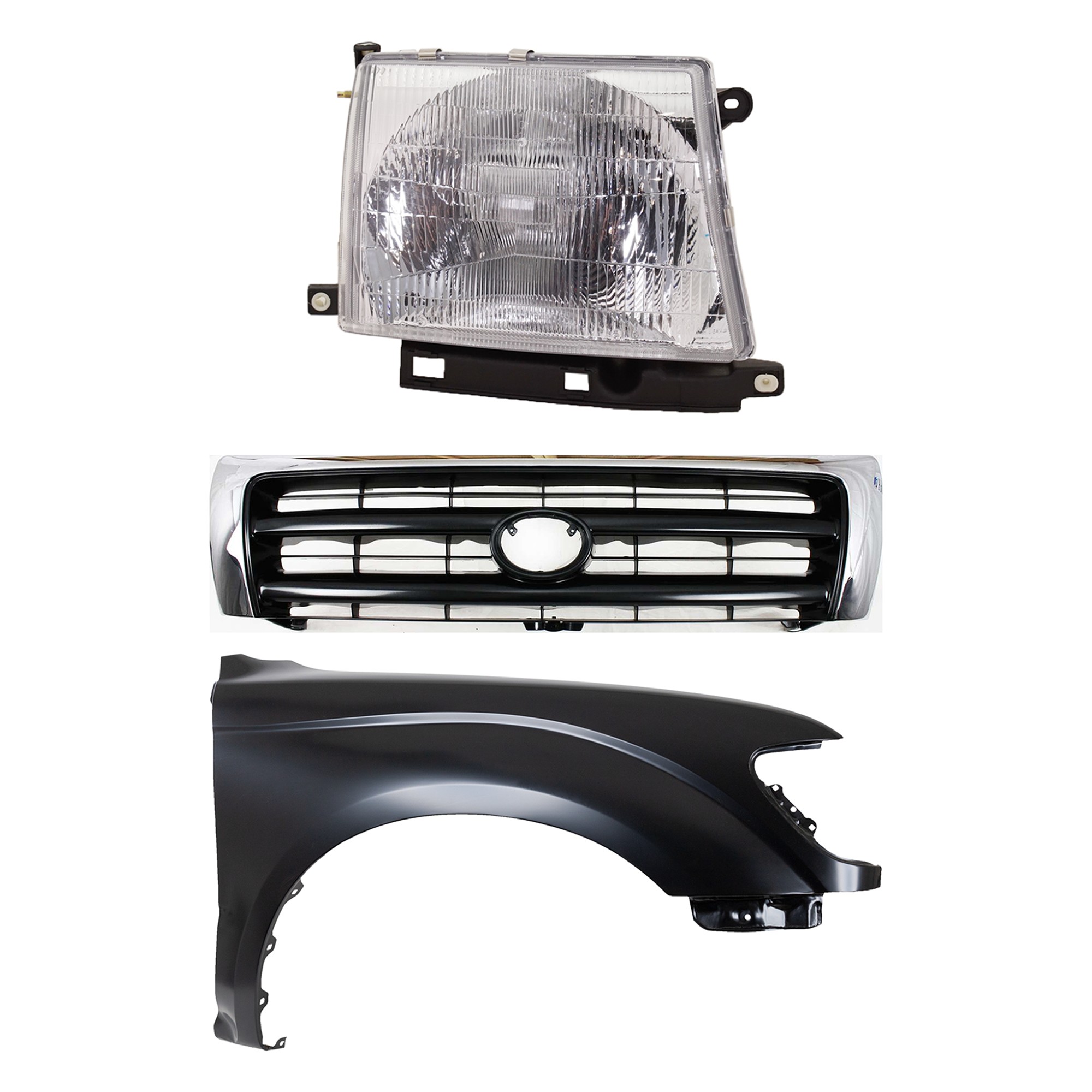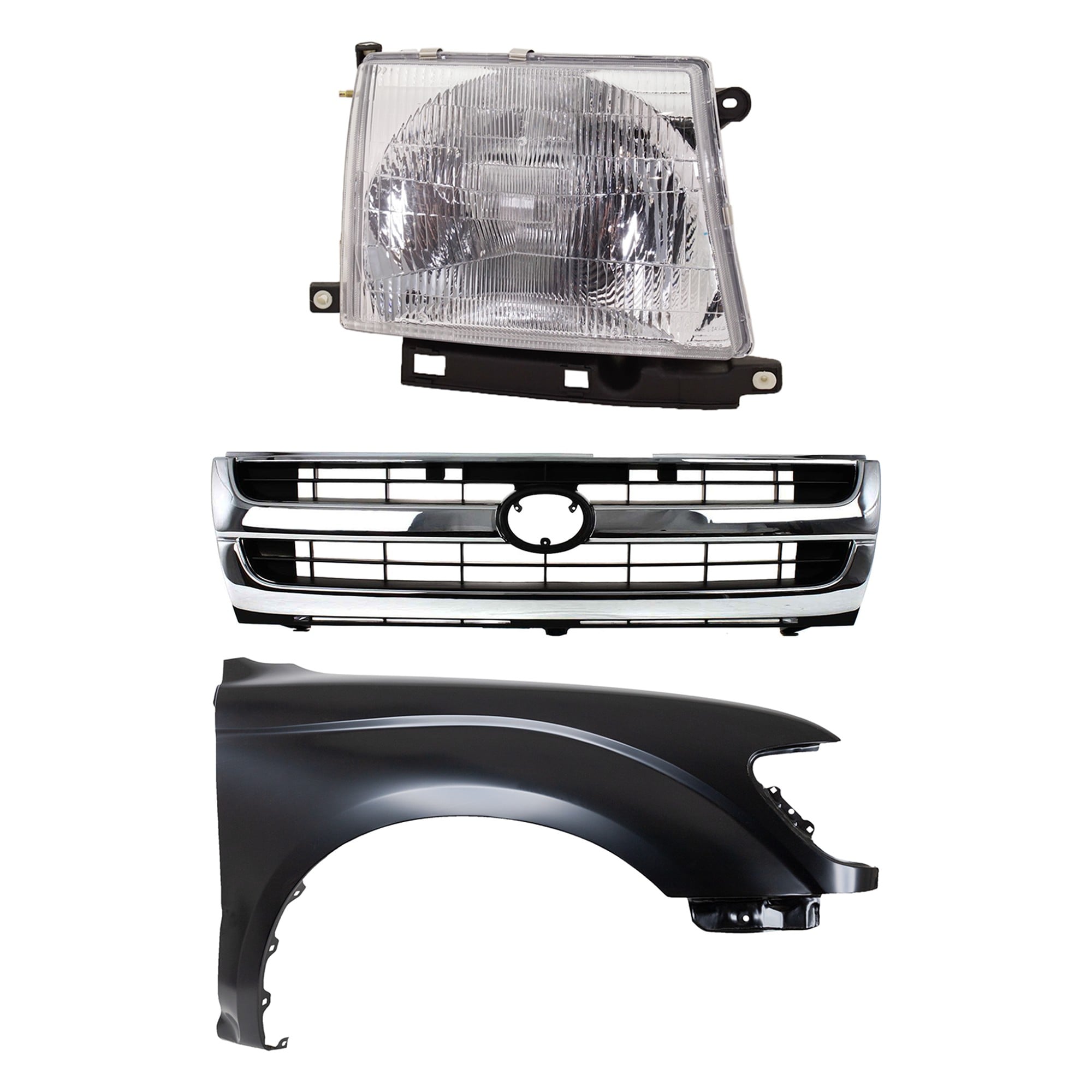 Front Fender Right (Passenger) for 1995-1996 Toyota Tacoma, Primed (Ready to Paint), 3-Piece Kit with Grille and Headlight, Replacement