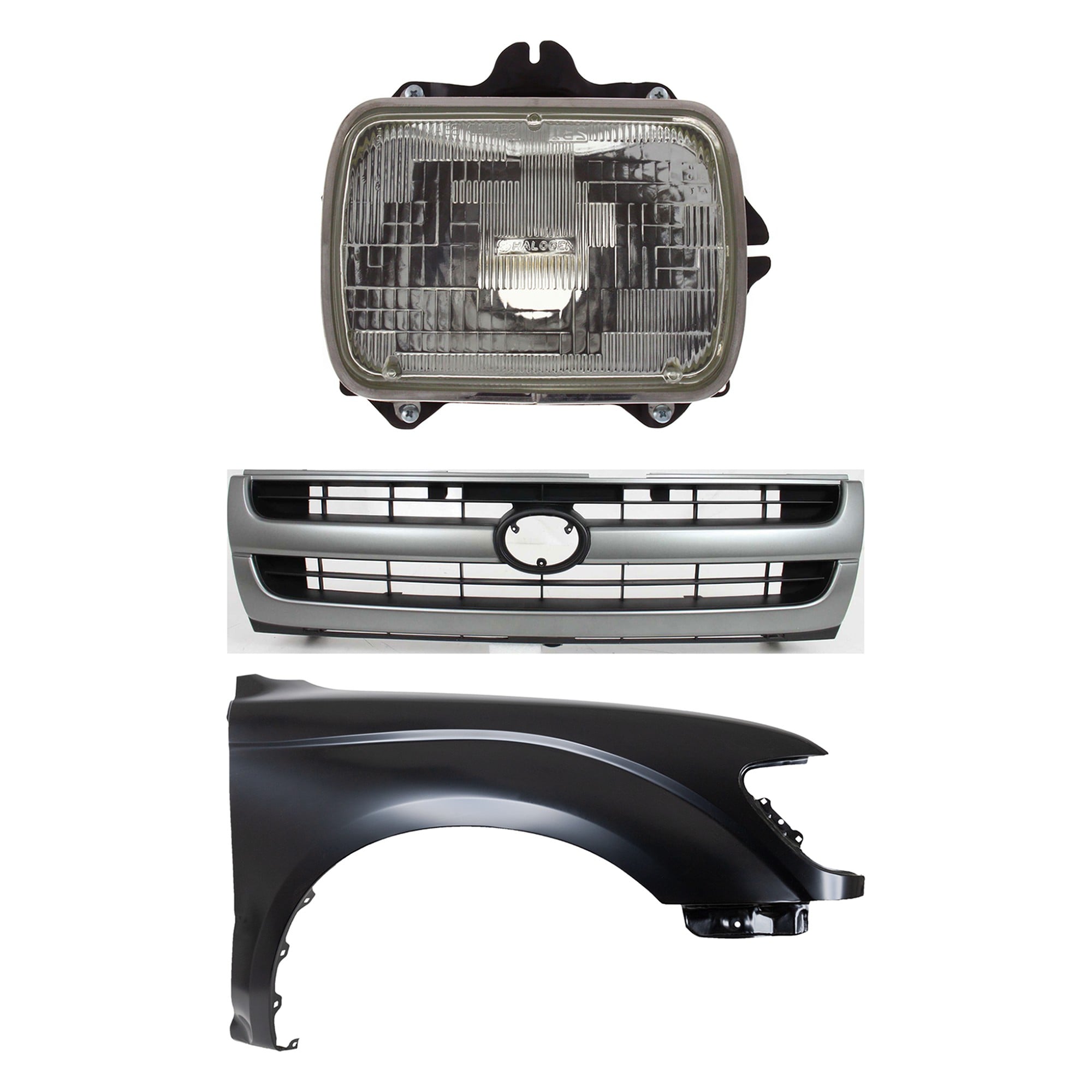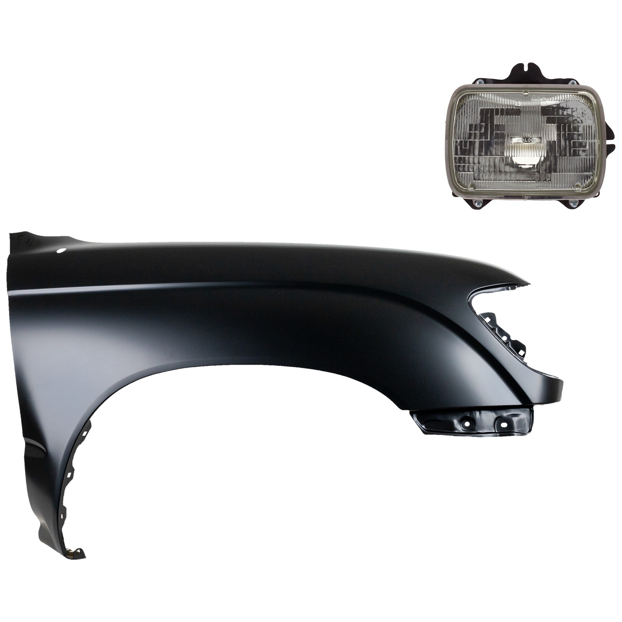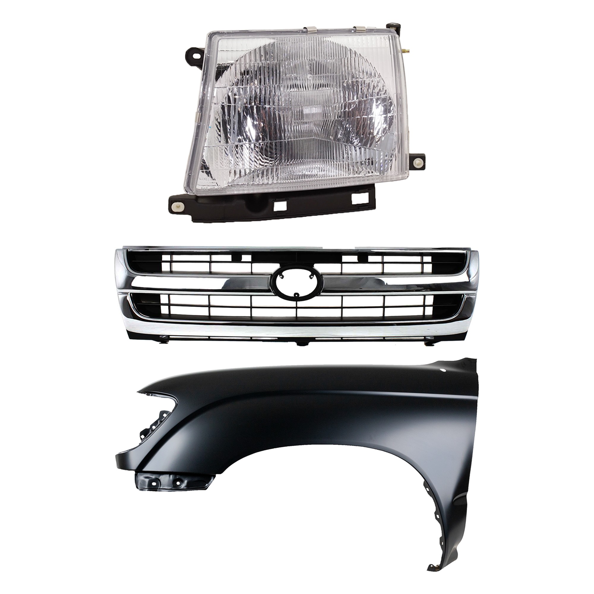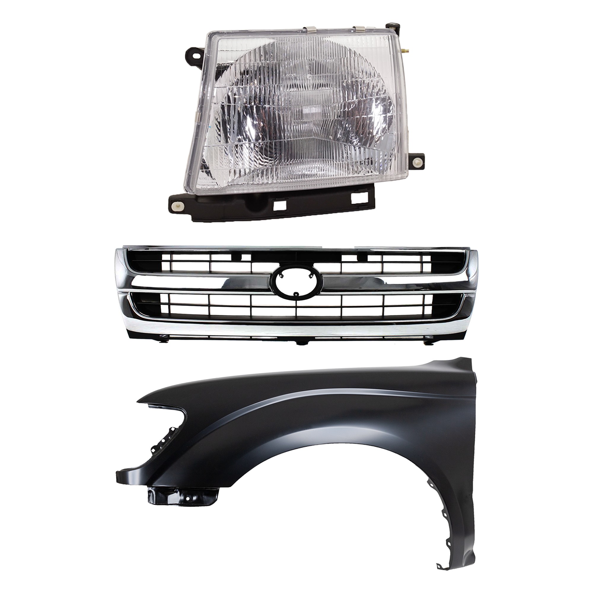 Front Fender Right (Passenger) for 1995-1996 Toyota Tacoma, Primed (Ready to Paint), 3-Piece Kit with Grille and Headlight, Replacement