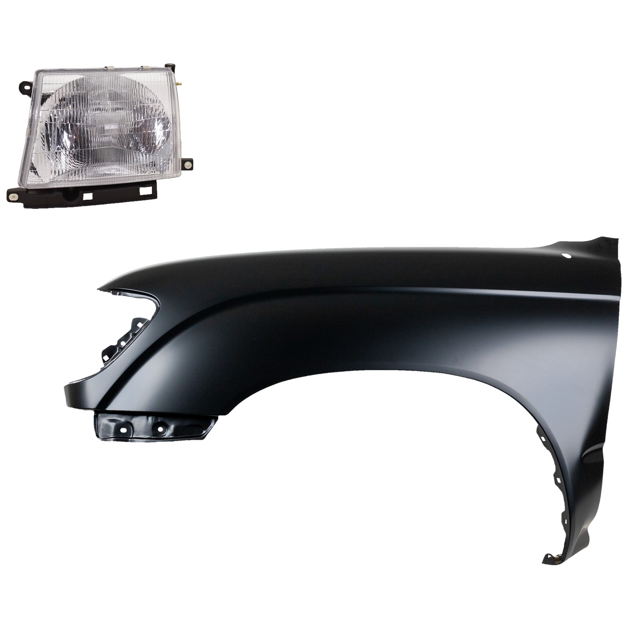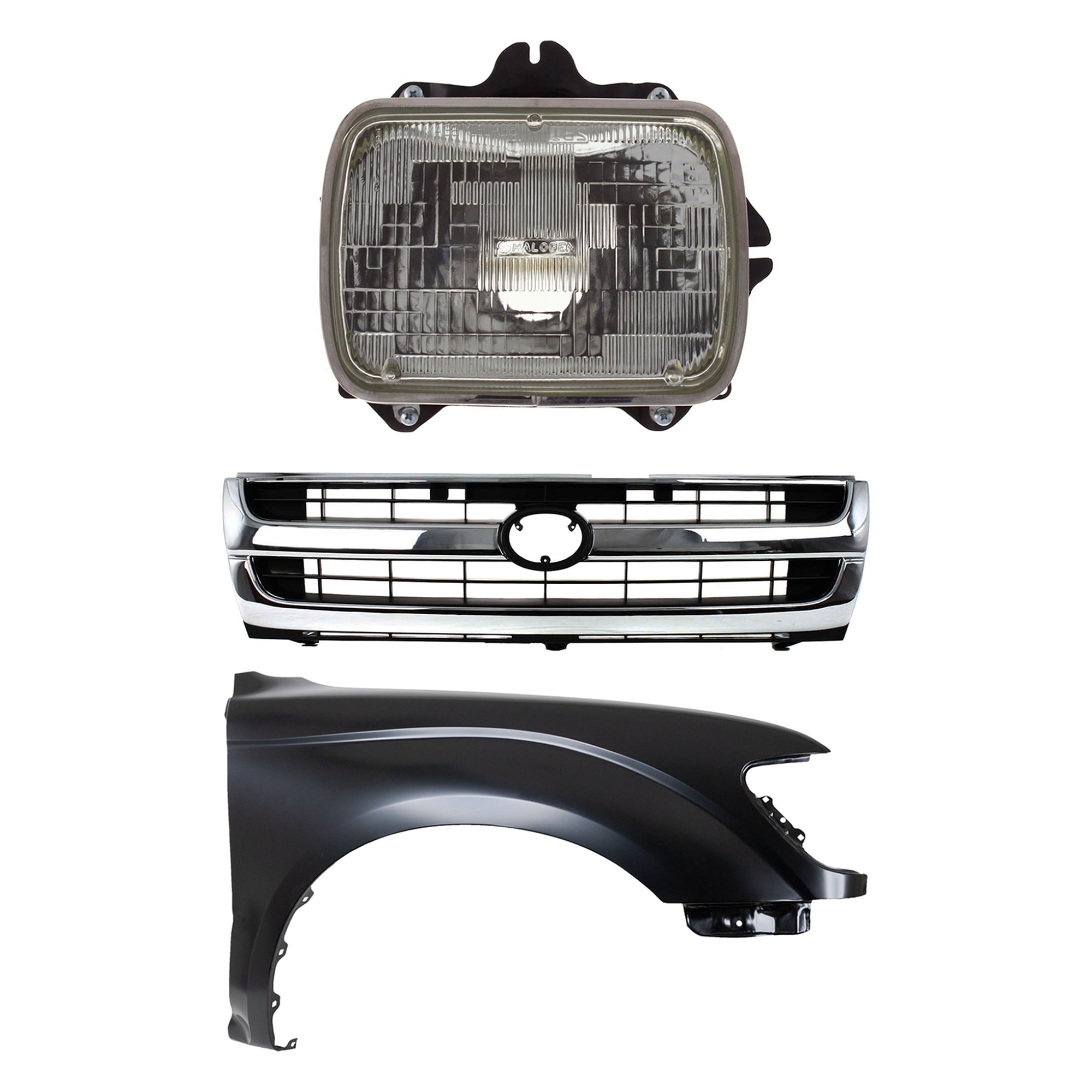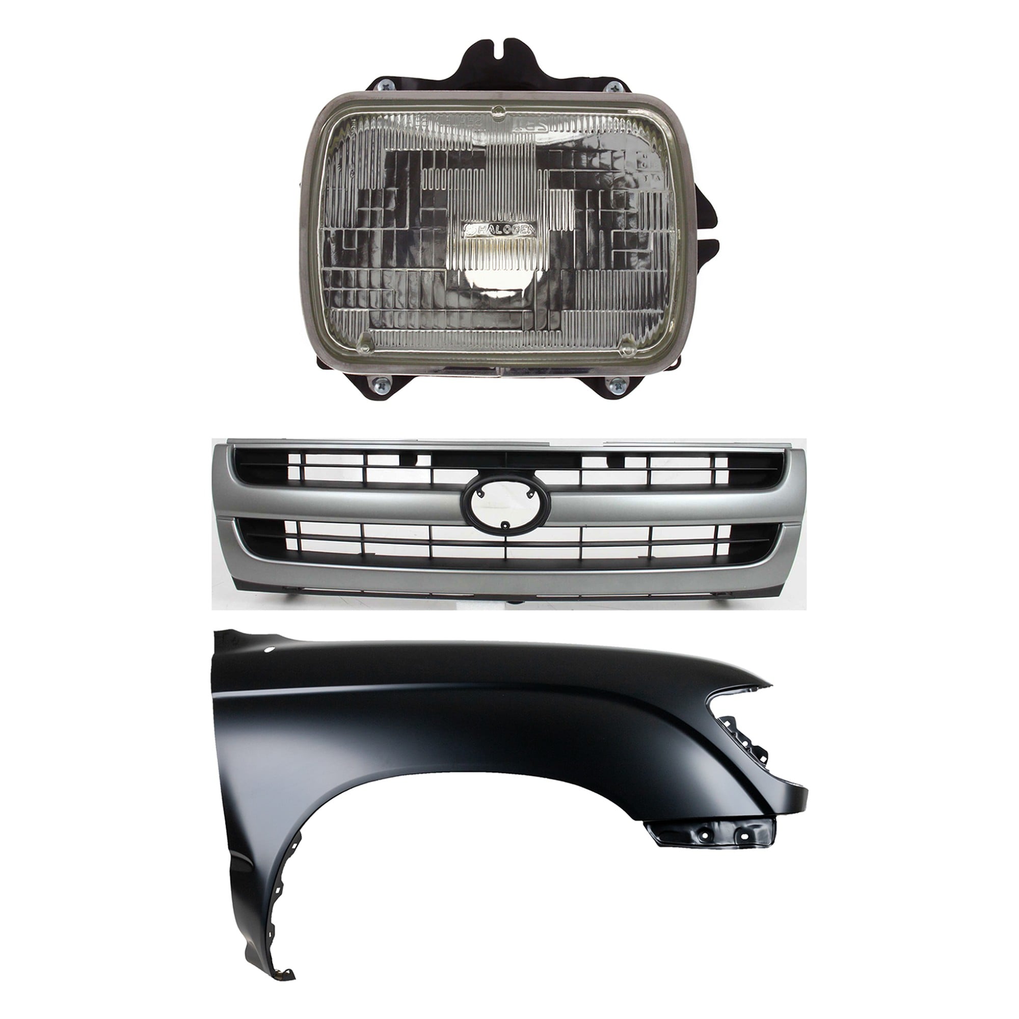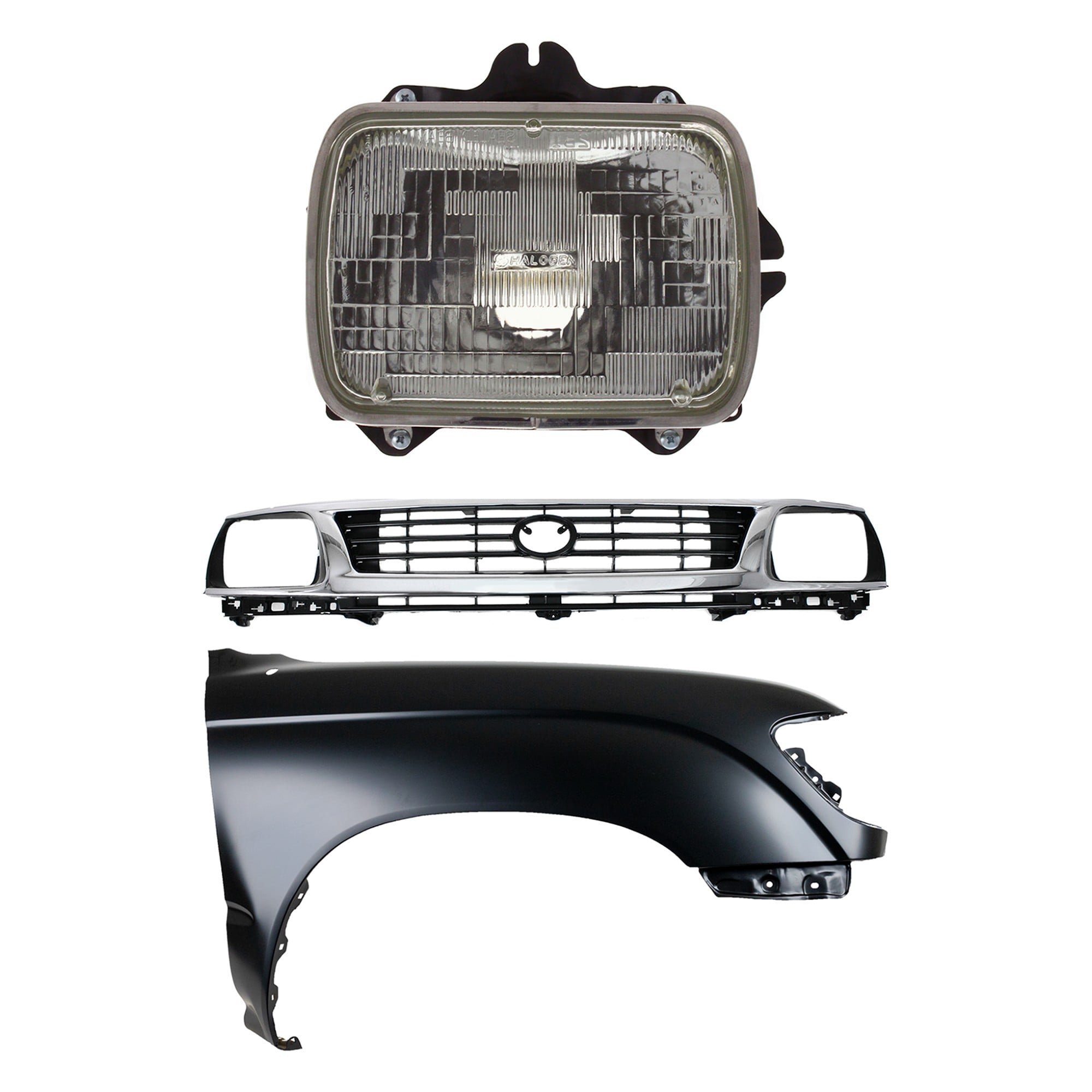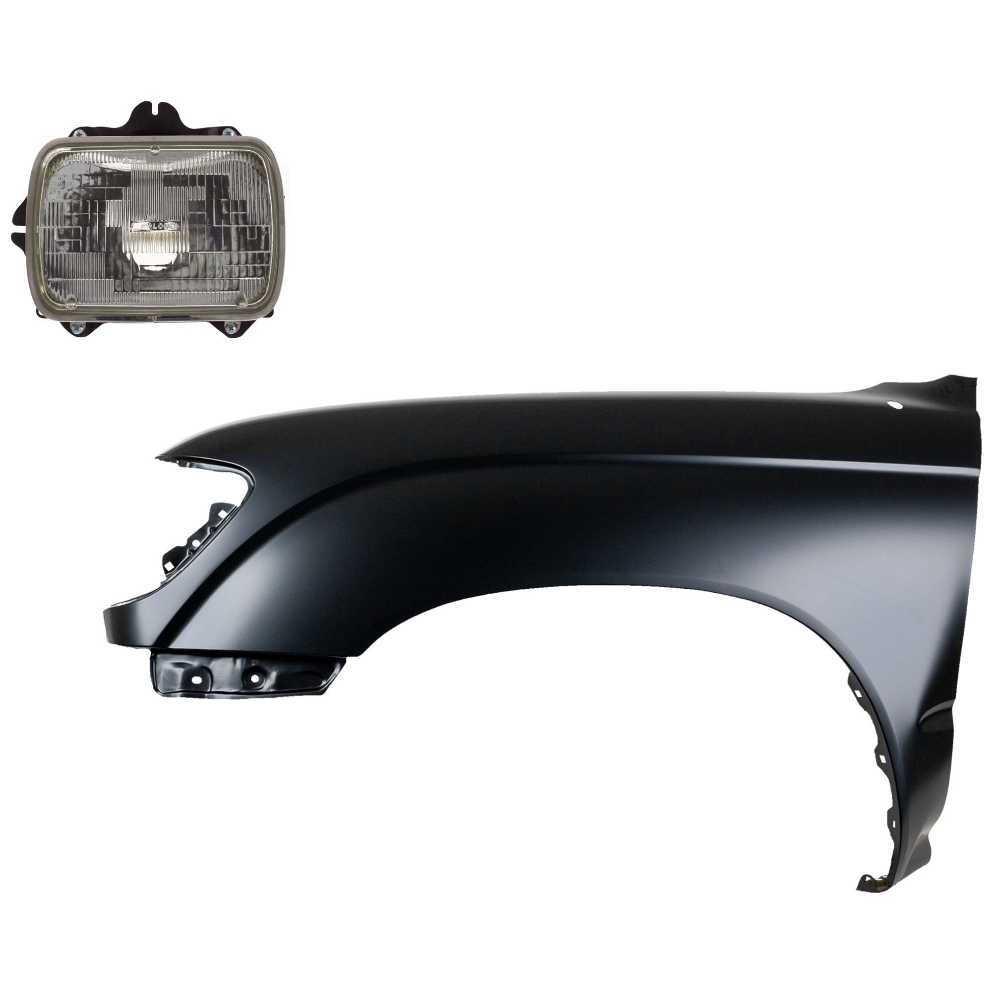 Front Fender Right (Passenger) for 1995-1996 Toyota Tacoma, Primed (Ready to Paint), 3-Piece Kit with Grille and Headlight, Replacement