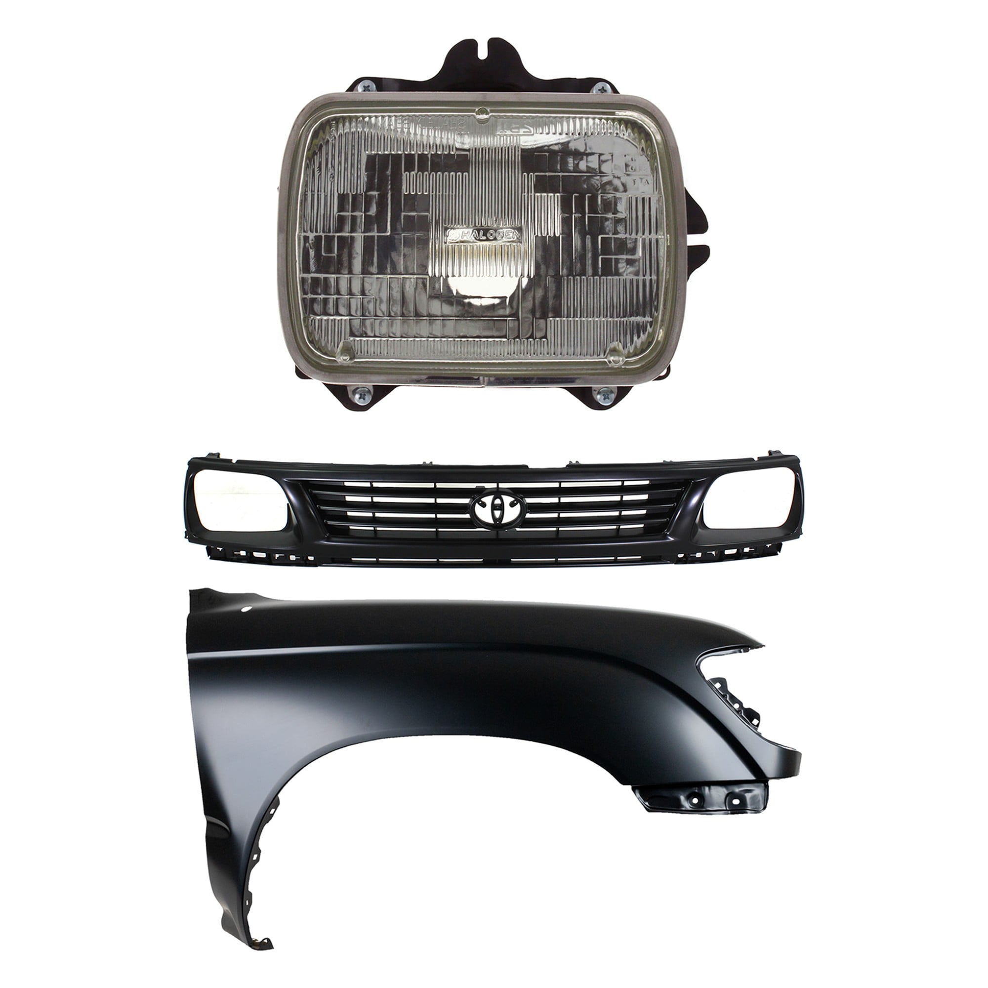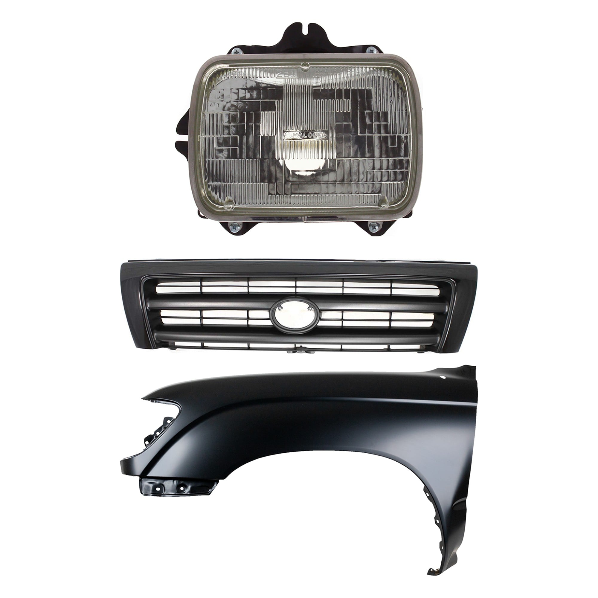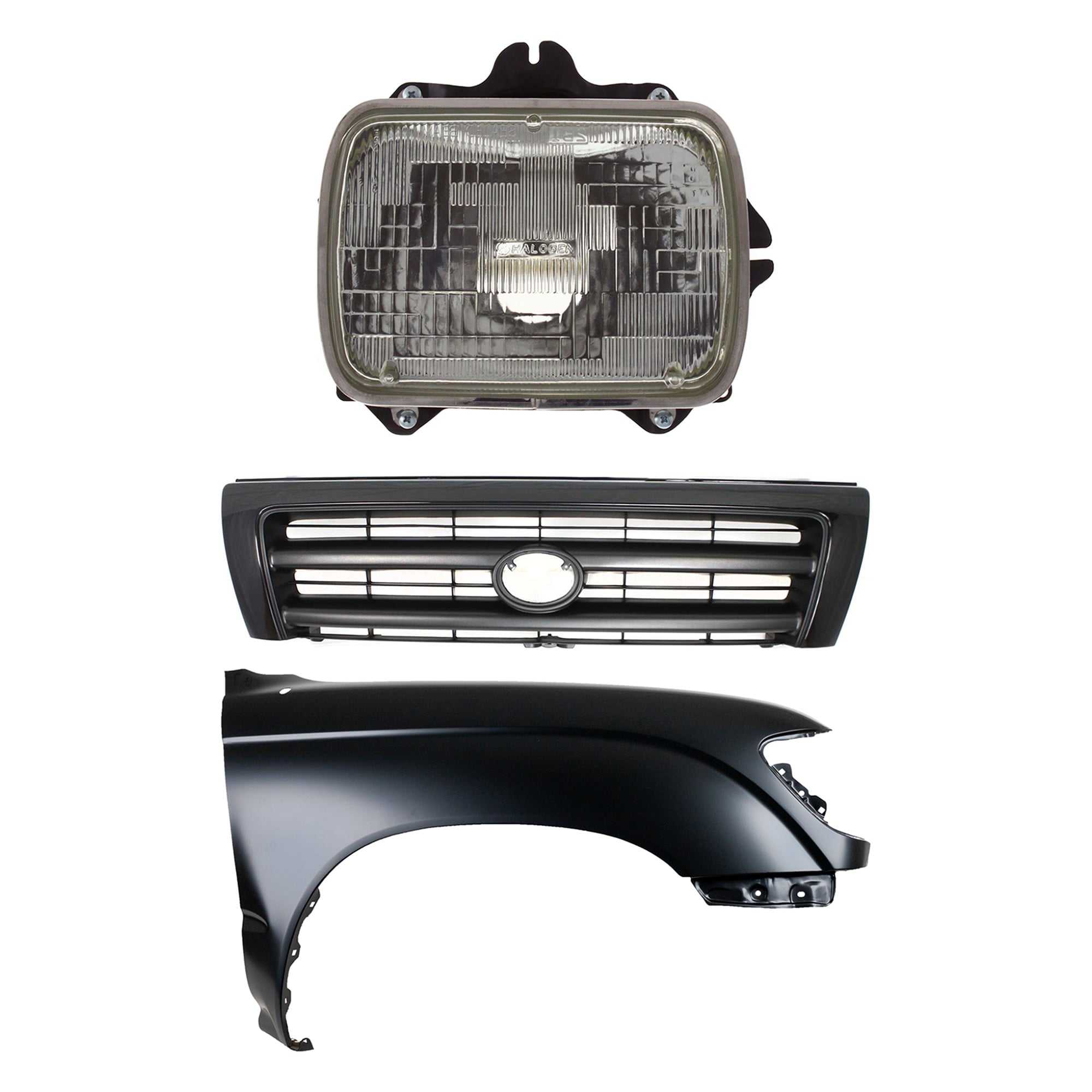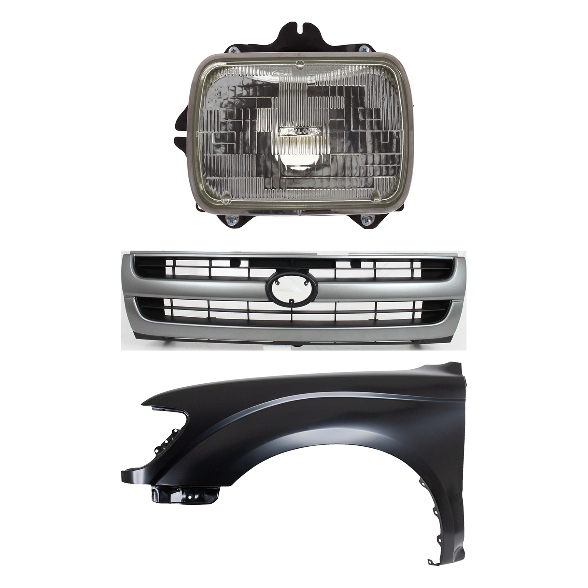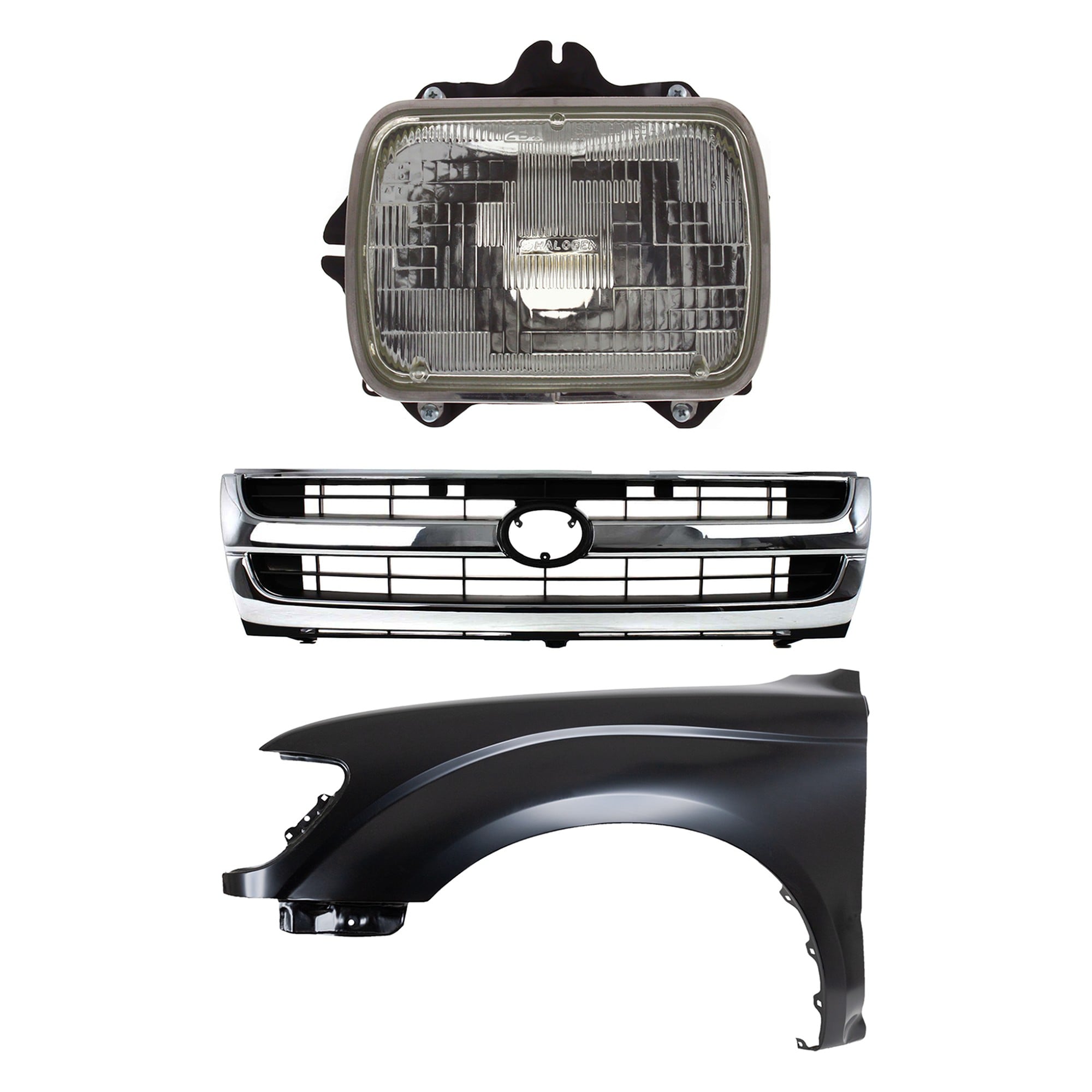 Front Fender Right (Passenger) for 1995-1996 Toyota Tacoma, Primed (Ready to Paint), 3-Piece Kit with Grille and Headlight, Replacement