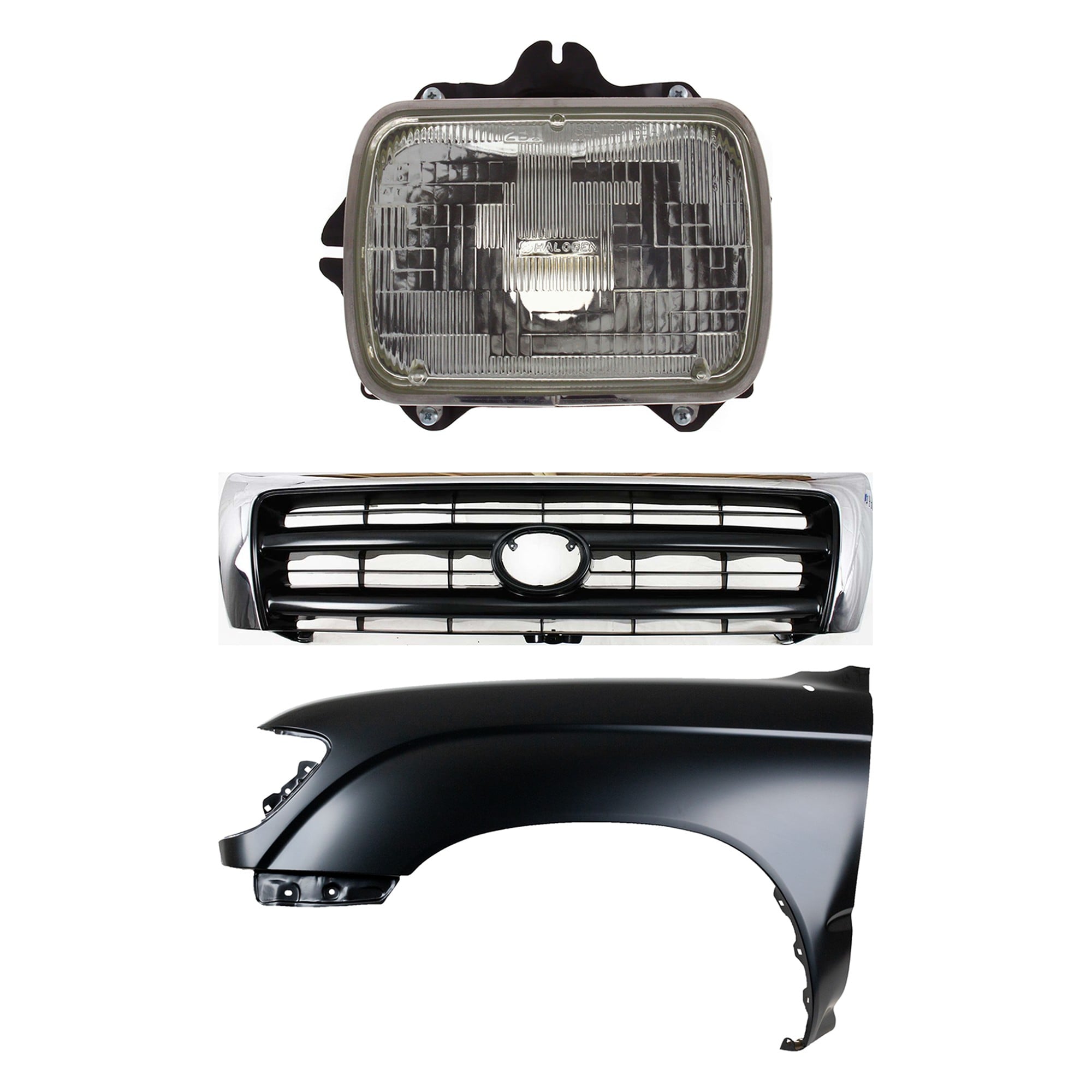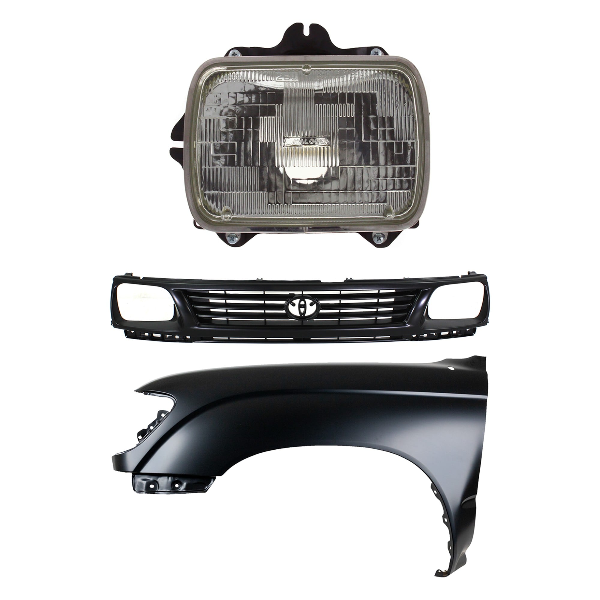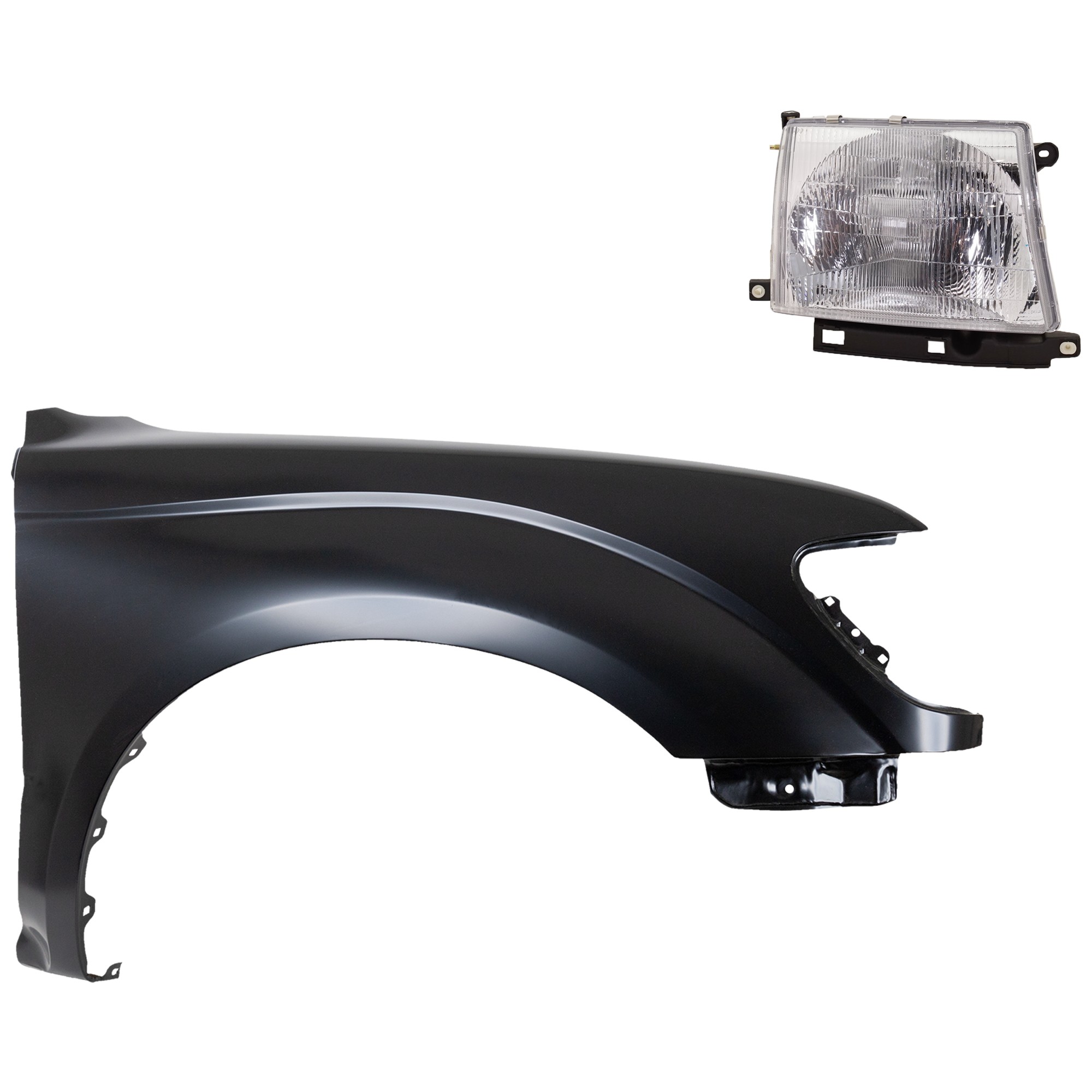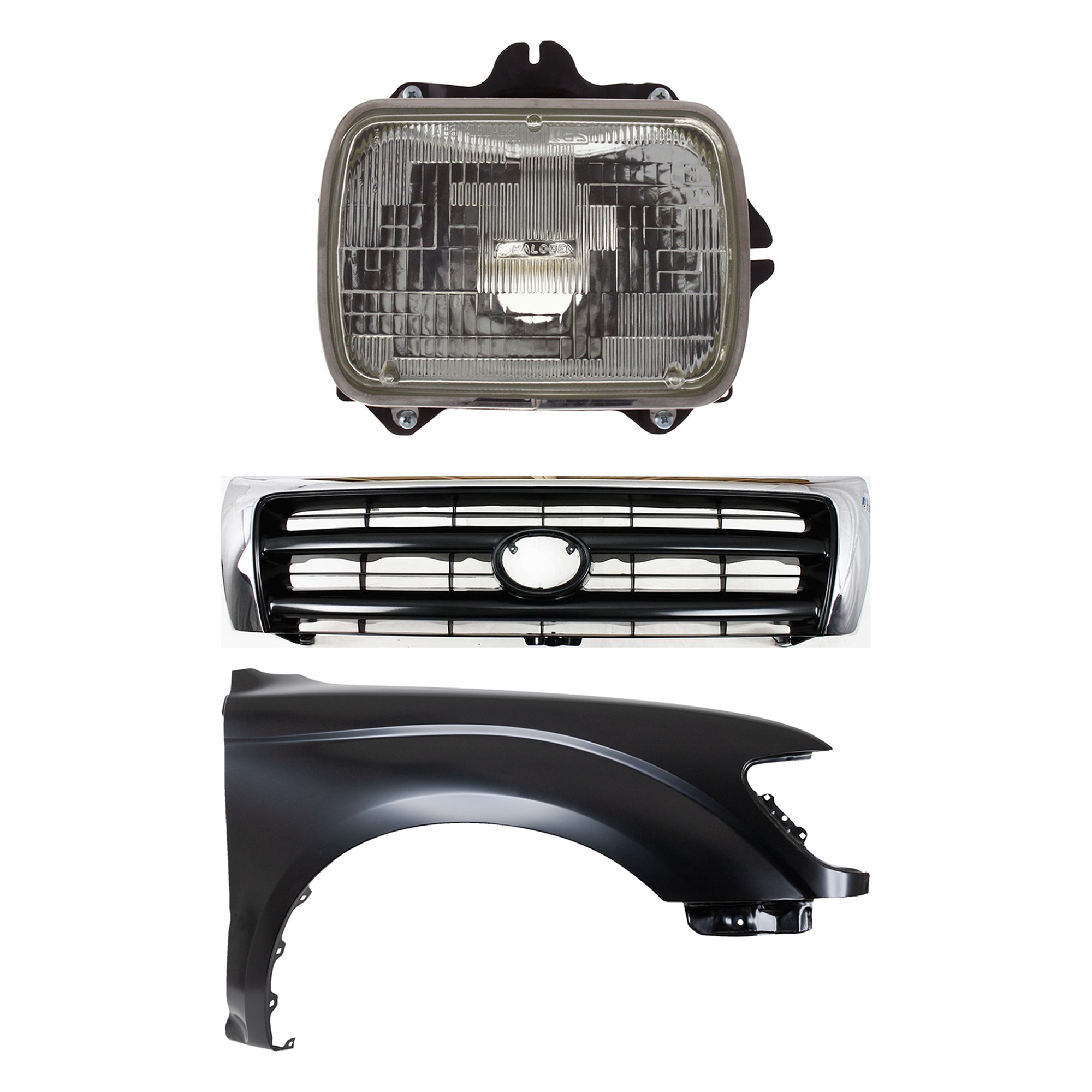 Front Fender Right (Passenger) for 1995-1996 Toyota Tacoma, Primed (Ready to Paint), 3-Piece Kit with Grille and Headlight, Replacement