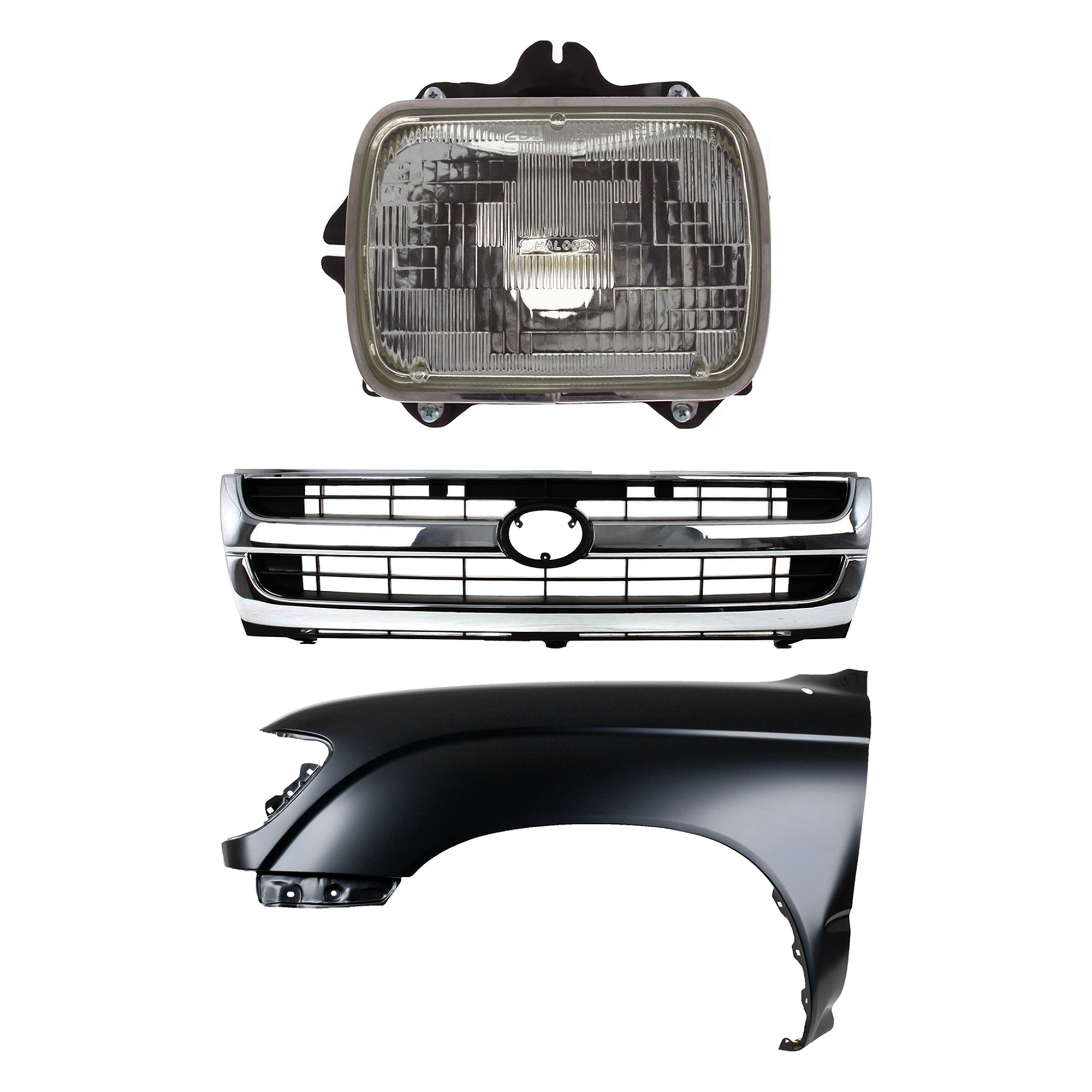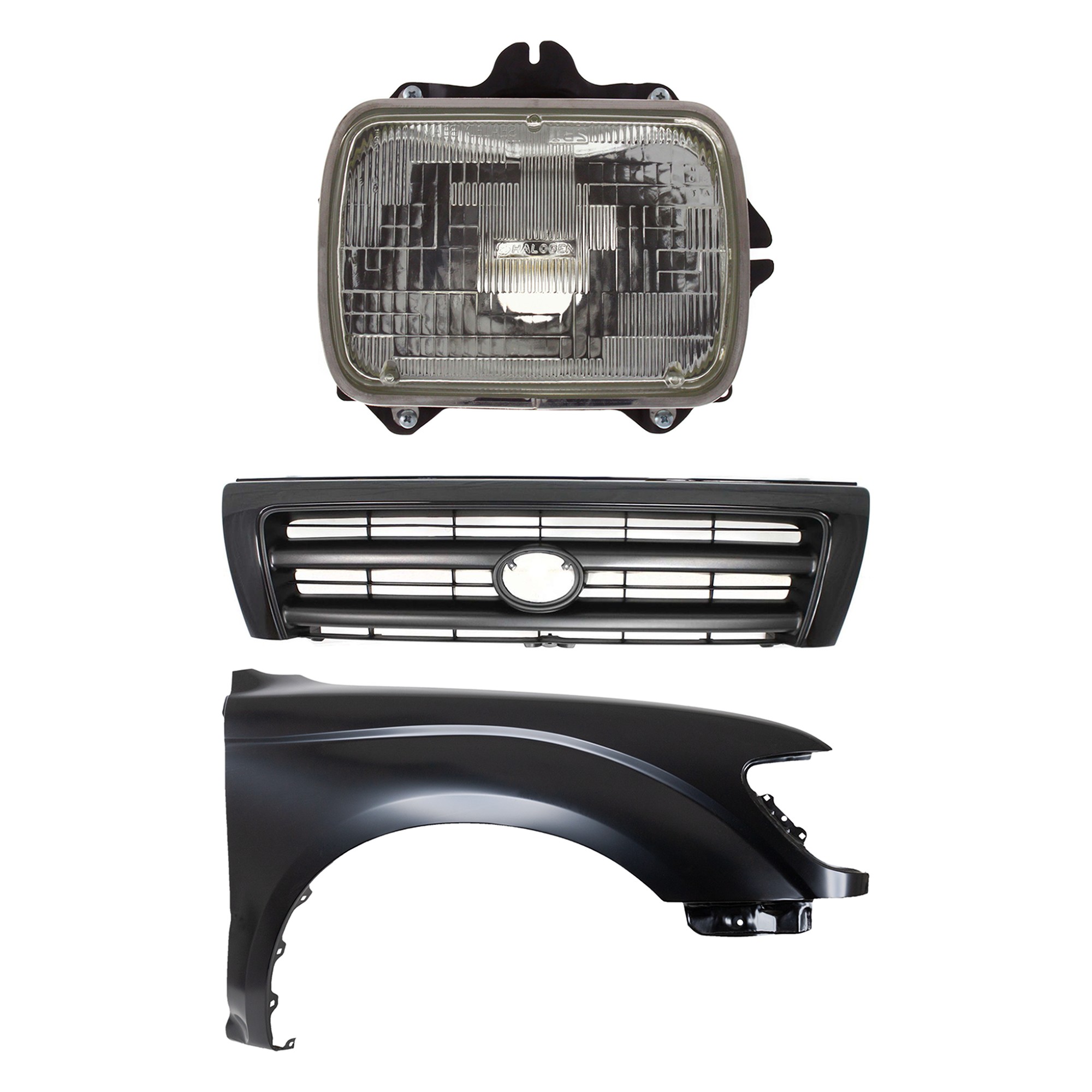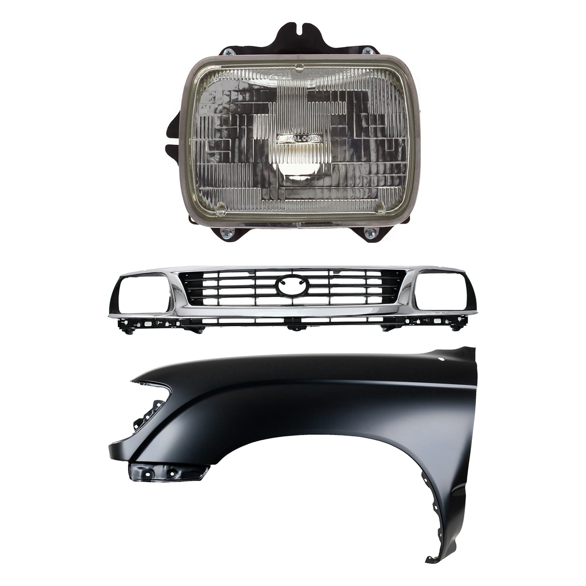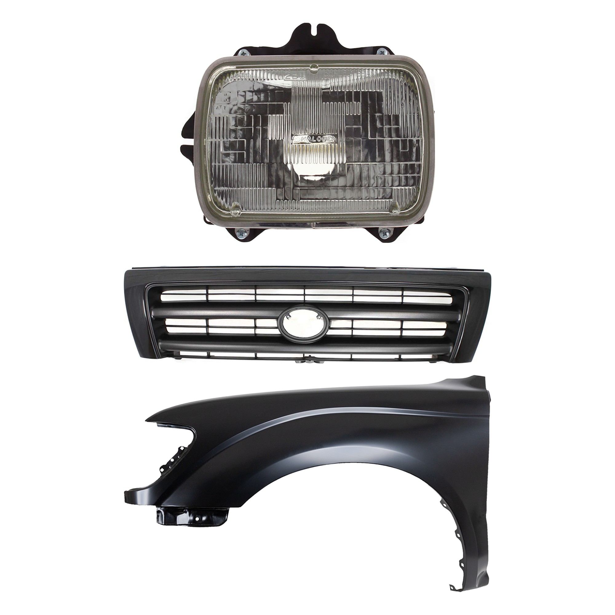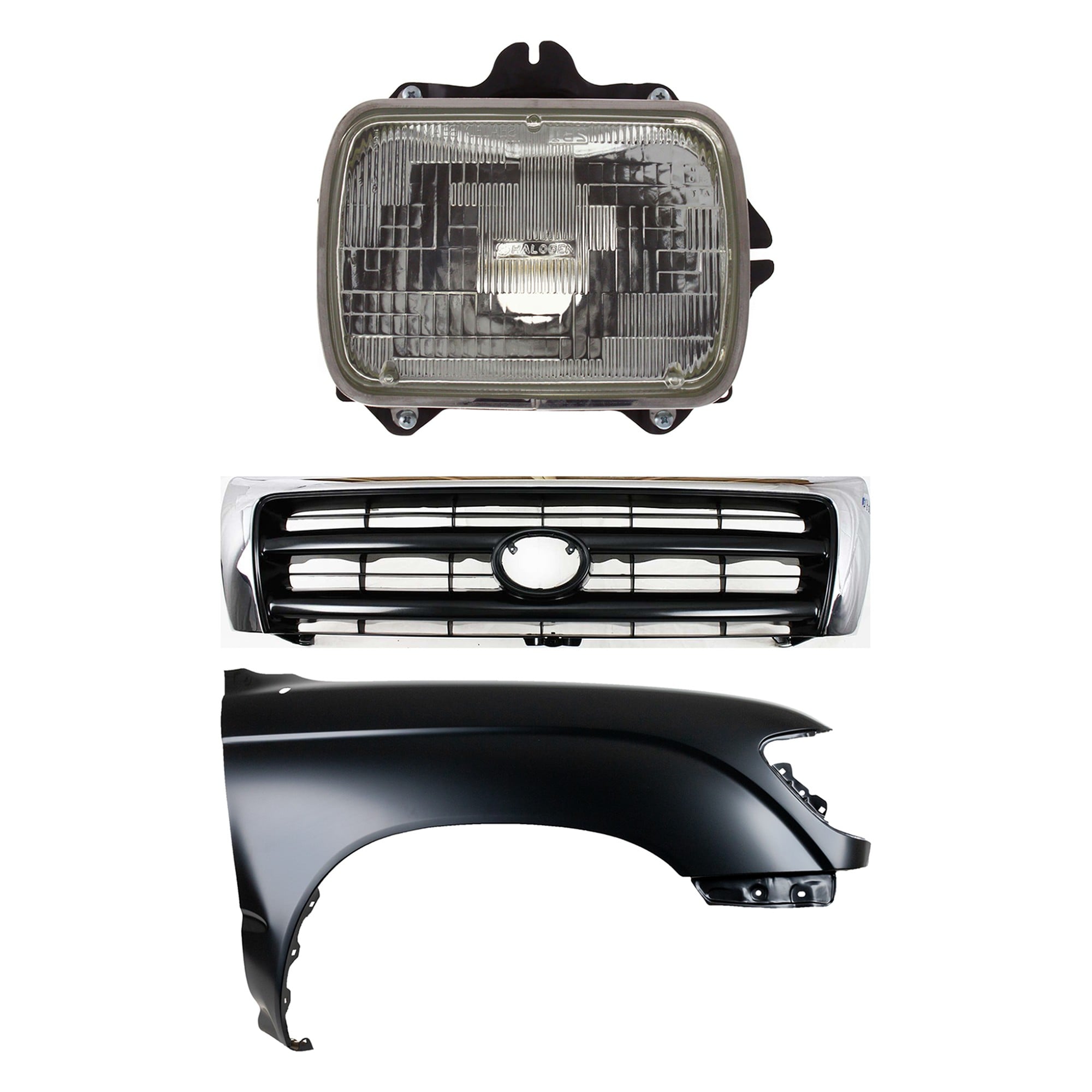 Front Fender Right (Passenger) for 1995-1996 Toyota Tacoma, Primed (Ready to Paint), 3-Piece Kit with Grille and Headlight, Replacement
