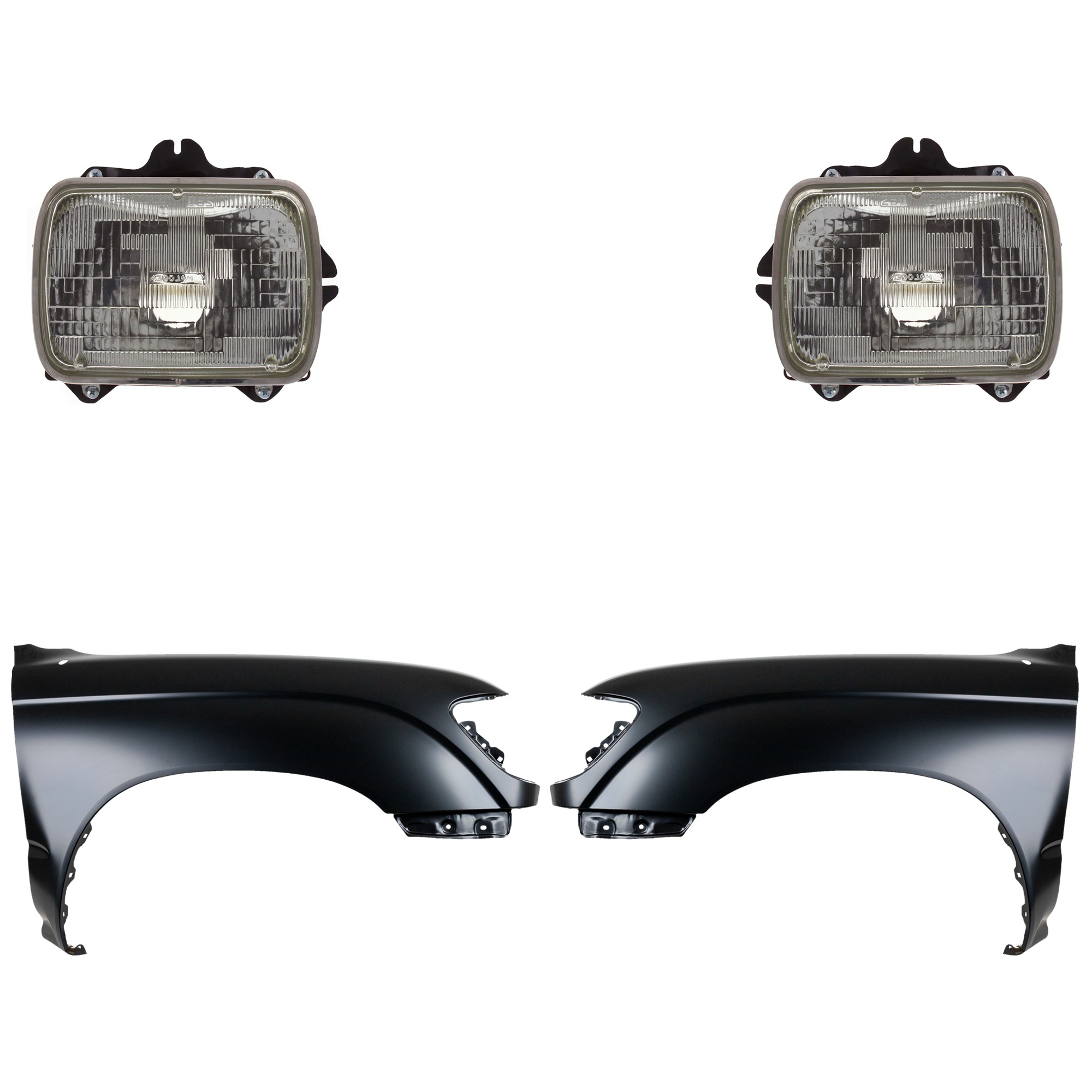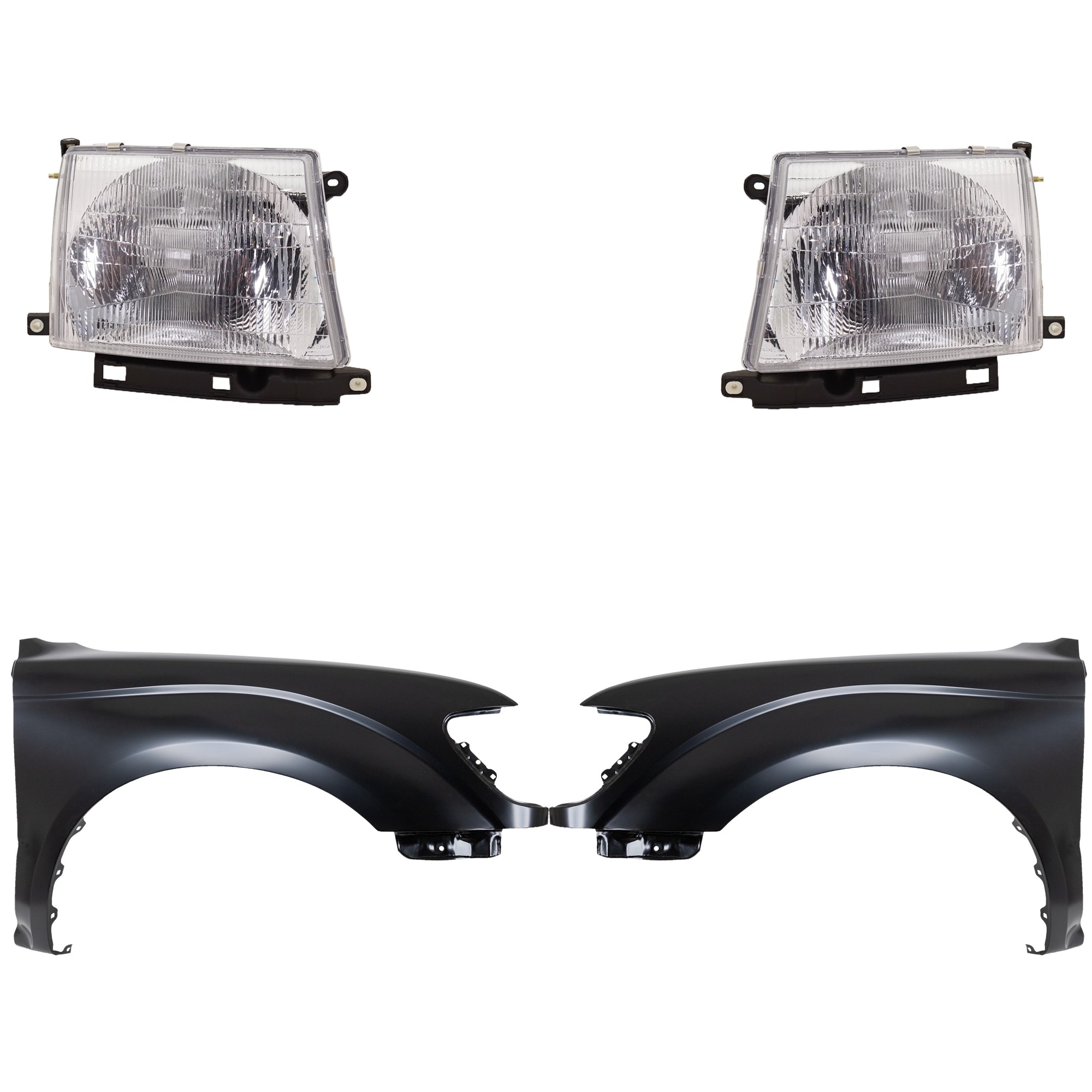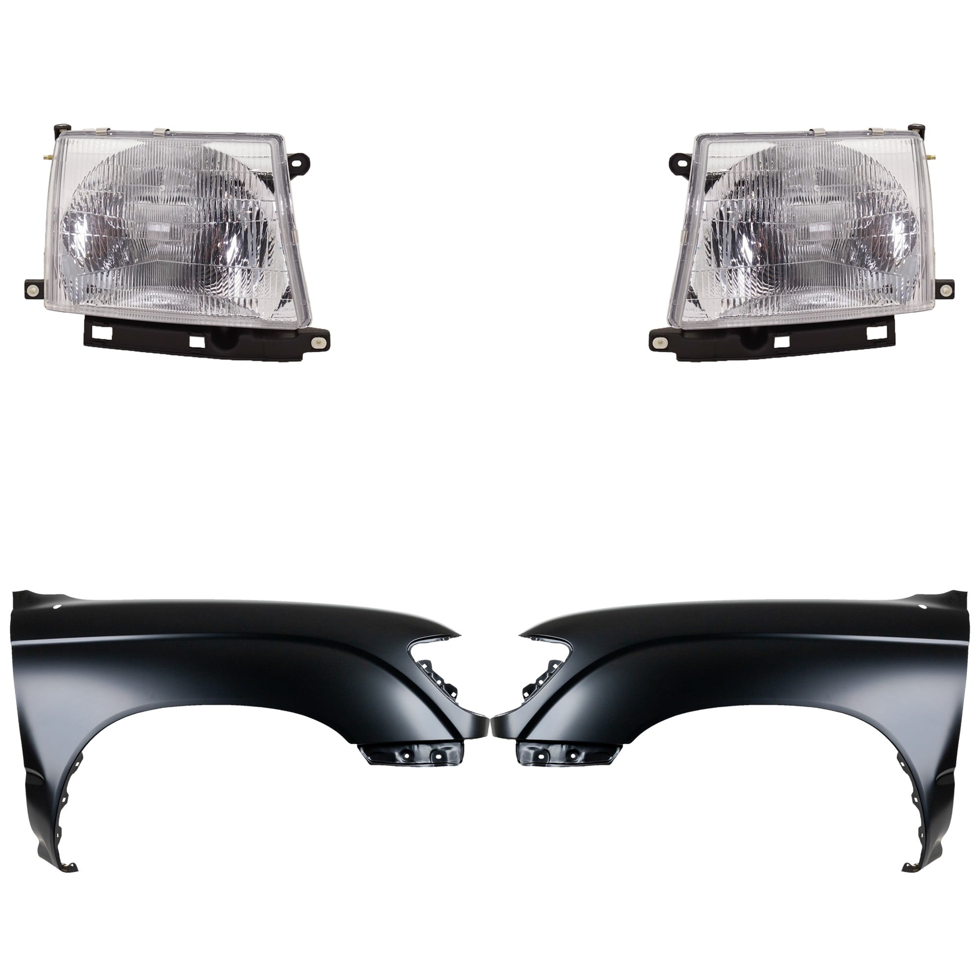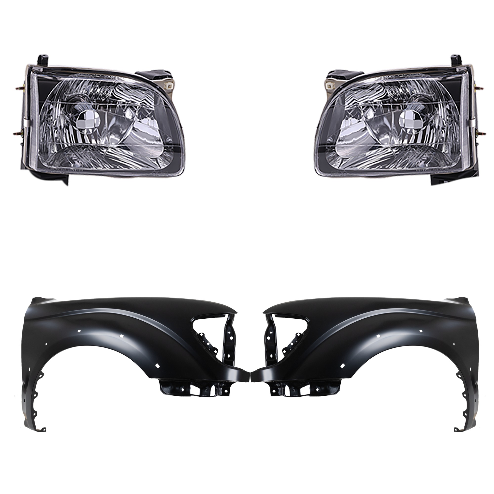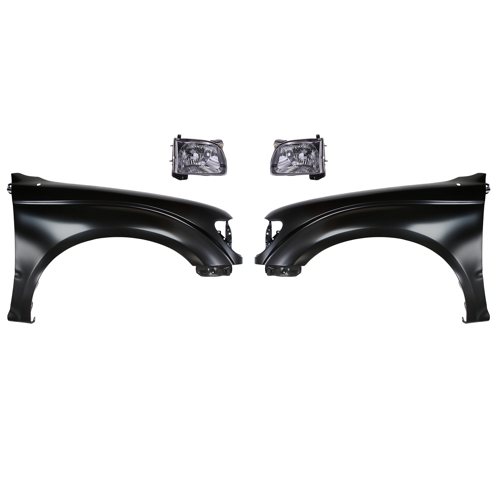 Front Fender for Toyota Tacoma 2001-2004, Right (Passenger) and Left (Driver), Primed (Ready to Paint), 4-Piece Kit, with Headlights, Replacement