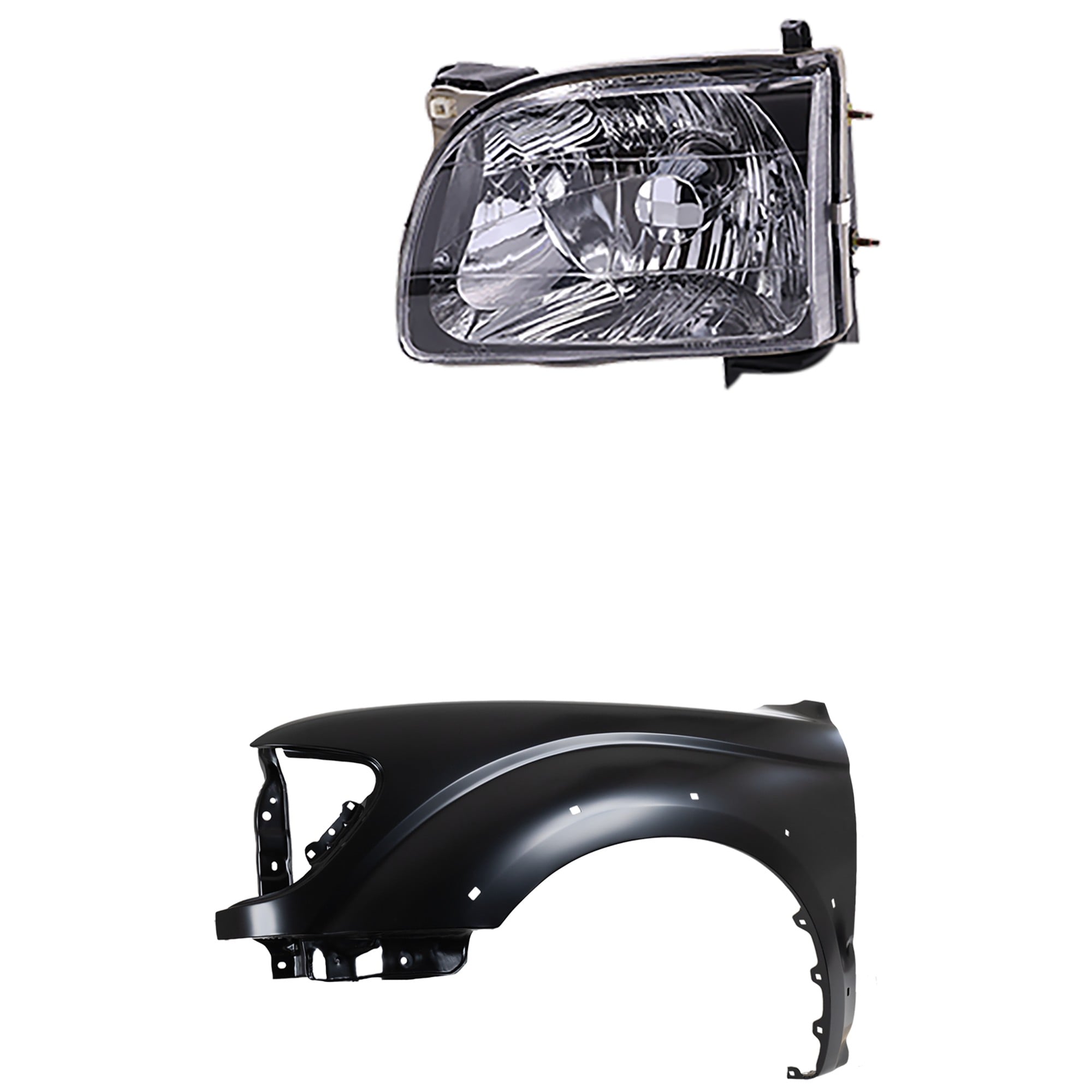 Front Fender for Toyota Tacoma 2001-2004, Left (Driver), Primed (Ready to Paint), 2-Piece Kit with Headlight Replacement