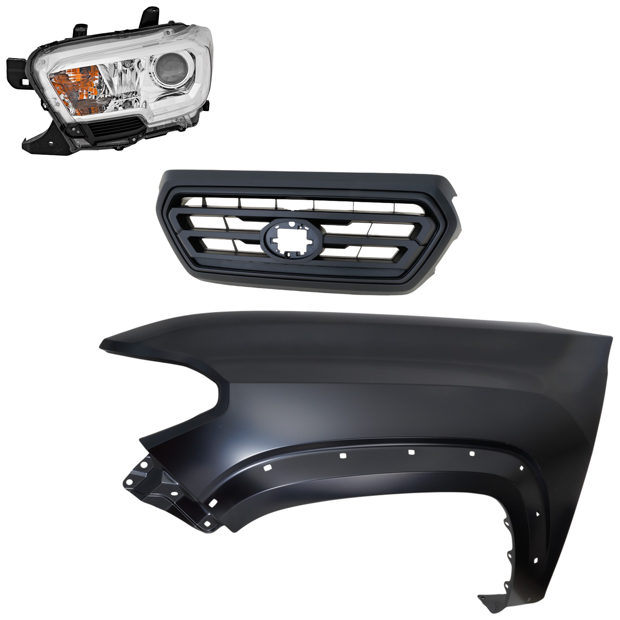 Front Fender for 2019-2022 Toyota Tacoma, Left (Driver), Primed (Ready to Paint), 3-Piece Kit with Grille and Headlight, (CAPA) Replacement