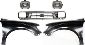5-Piece Kit Grille for 1995-1997 Toyota Tacoma, Painted Gray Shell with Painted Black Insert, Including Fenders and Headlights, Replacement