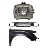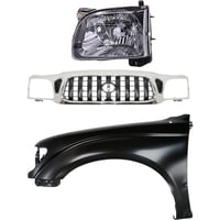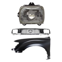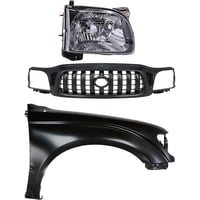 Grille Kit for 1995-1997 Toyota Tacoma with Chrome Shell and Painted Black Insert, 3-Piece Set includes Fender and Headlight, Replacement