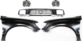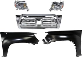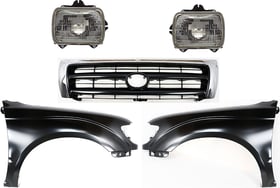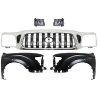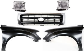 Grille Kit for 1995-1997 Toyota Tacoma, Chrome Shell with Painted Black Insert, 5-Piece Set including Fenders and Headlights, Replacement
