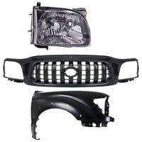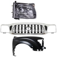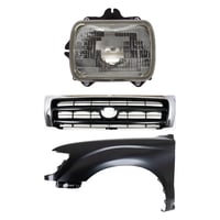 3-Piece Kit Grille for Toyota Tacoma 1995-1997, Chrome Shell with Painted Black Insert including Fender and Headlight Replacement