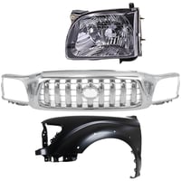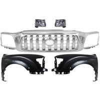 Chrome Shell Grille with Dark Silver Painted Insert for 1997 Toyota Tacoma, 5-Piece Kit including Fenders and Headlights, Replacement